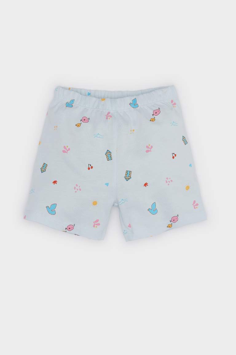 Girls' Baby Pajama Set with Short Sleeve Printed Top and Elastic Waist Shorts