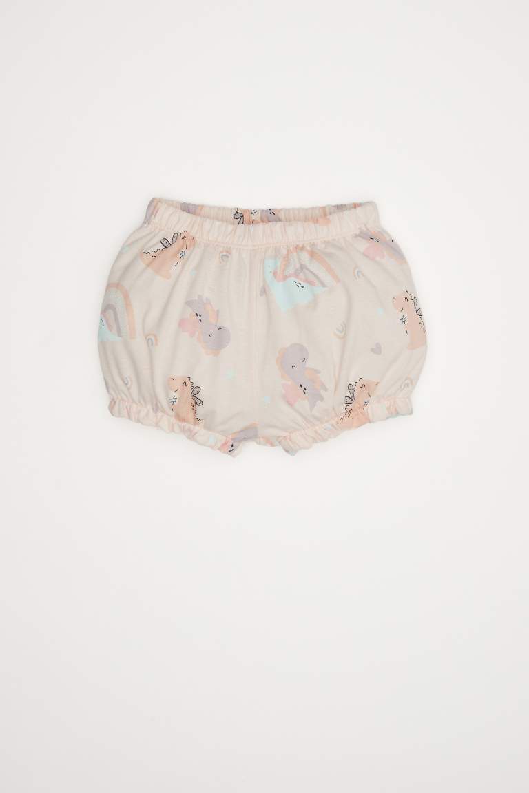 Girls' Dinosaur Print Short Sleeve Pajama Set with Elastic Waist Shorts