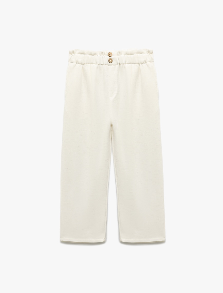 Girls' Elastic Waist Linen and Viscose Blend Basic Trousers