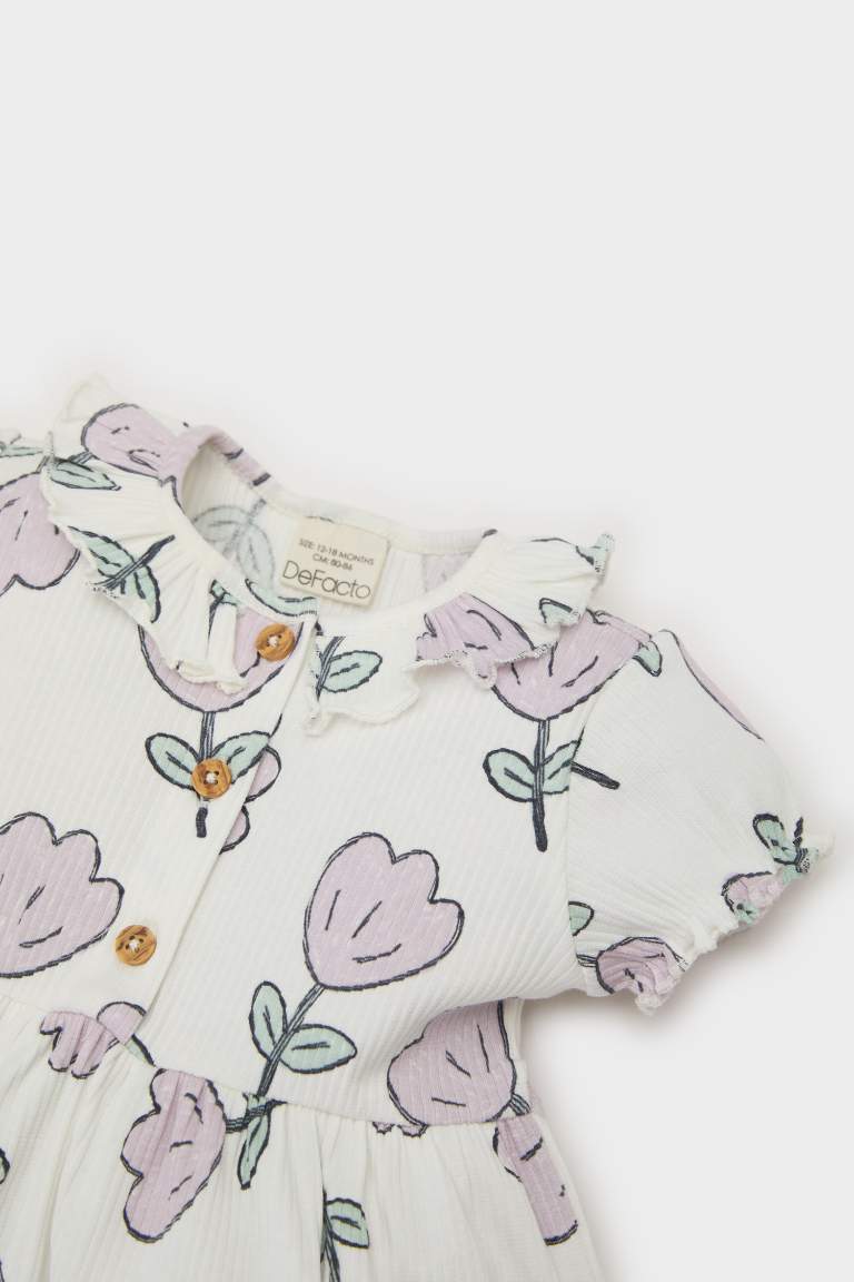 This adorable floral short sleeve dress for baby girls is perfect for warm days and special occasions alike. Made from a soft and breathable cotton blend, it ensures comfort while allowing for easy movement. The charming ribbed texture adds a touch of style, making it a delightful addition to any little one’s wardrobe. Pair it with cute sandals or a matching headband for a complete look that will brighten up any outing!