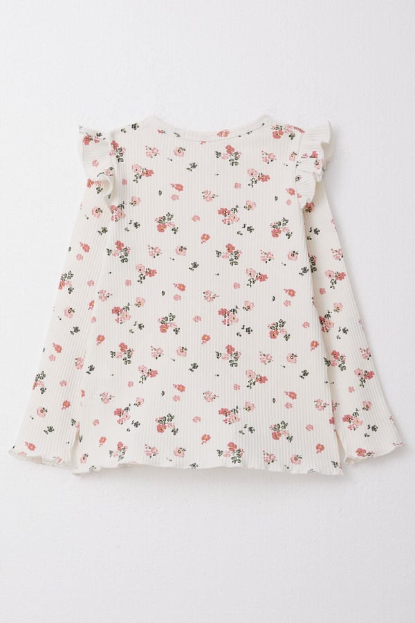 Girls’ Long Sleeve Floral Ruffle Shoulder White T-Shirt (2 Years)