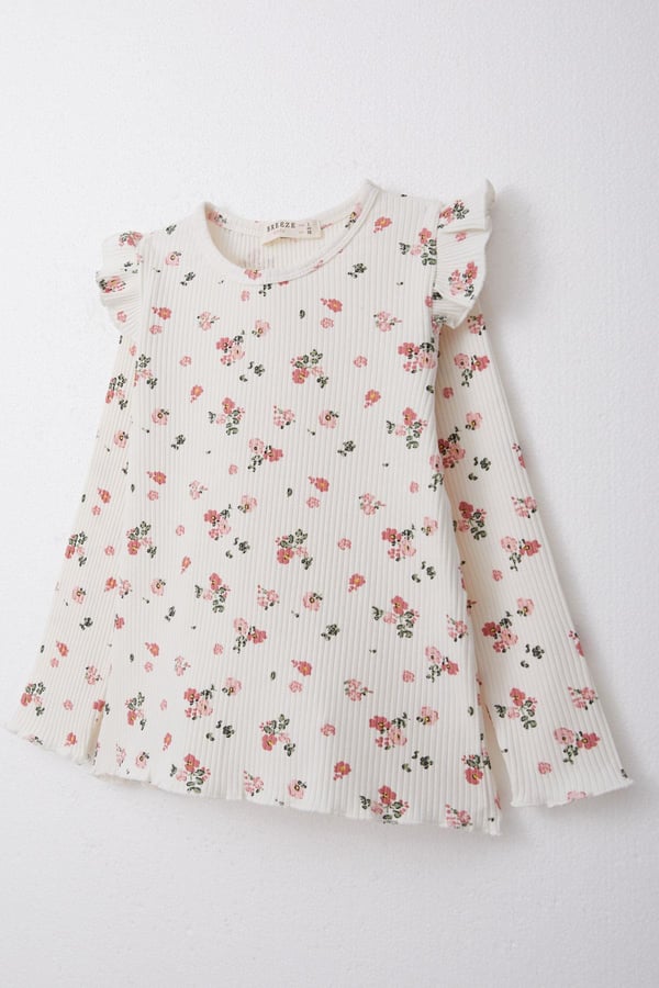 Delight your little one with this charming long sleeve T-shirt, featuring an adorable floral pattern and playful ruffle details on the shoulders. Made from a soft blend of cotton and elastane, this lightweight top is perfect for layering during the fall, winter, or spring seasons. The classic crew neckline and regular fit ensure all-day comfort for your active girl, making it an ideal choice for everyday wear. Dress her in style and let her bloom with confidence in this delightful piece!
