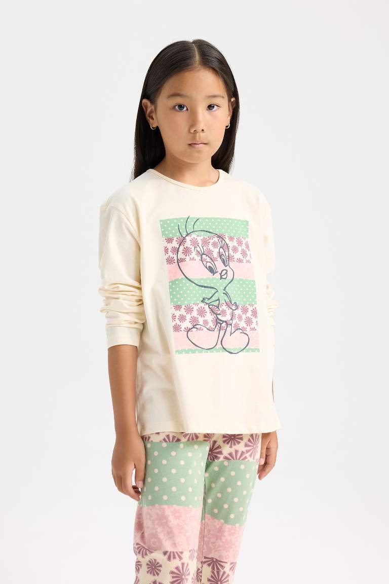Girls’ Looney Tunes Long Sleeve Pajama Set with Elastic Waist Pants