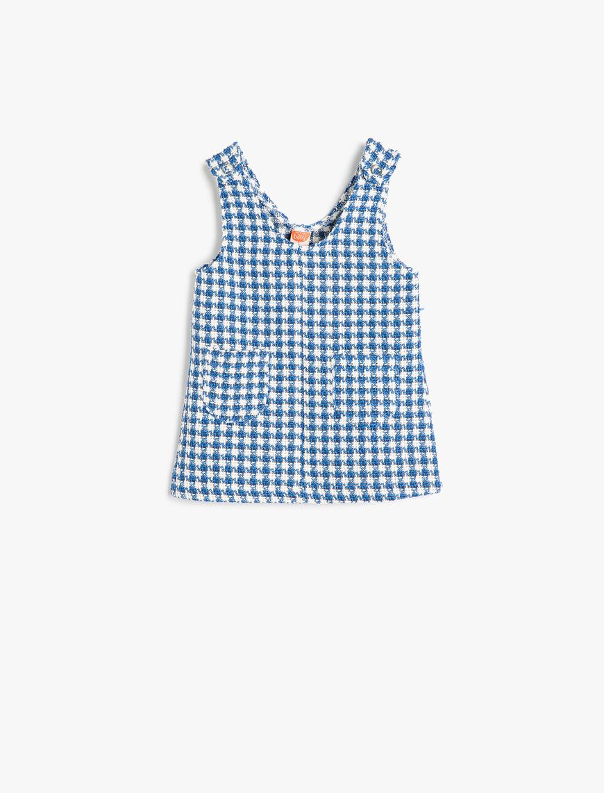 Dress your little one in style and comfort with our charming midi length tweed dress. Featuring a stylish V-neck and practical pockets, this sleeveless design is perfect for warm days and playful adventures. Crafted from a safe cotton blend, our dress ensures that your baby girl is not only fashionable but also protected, as it is free from harmful chemicals and sharp elements. Let her explore the world with confidence in this delightful outfit!