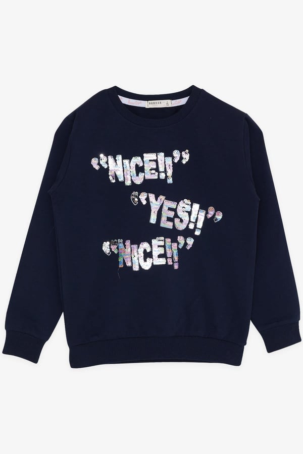 Girls' Navy Blue Sweatshirt with Sequin Print (8-9 Years)