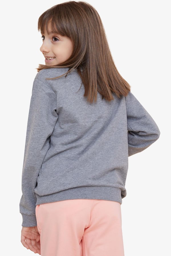 Keep your little girl cozy and stylish with our adorable dark gray melange pullover sweatshirt, featuring a playful sequin print. Made from a soft cotton and lycra blend, this sweatshirt ensures comfort and durability for everyday adventures. With a classic crew neck and long sleeves, it’s perfect for layering during the chilly autumn and winter months. Available in a range of sizes for ages 8 to 14, this trendy piece will quickly become a favorite in her wardrobe, making her feel both fashionable and comfortable.