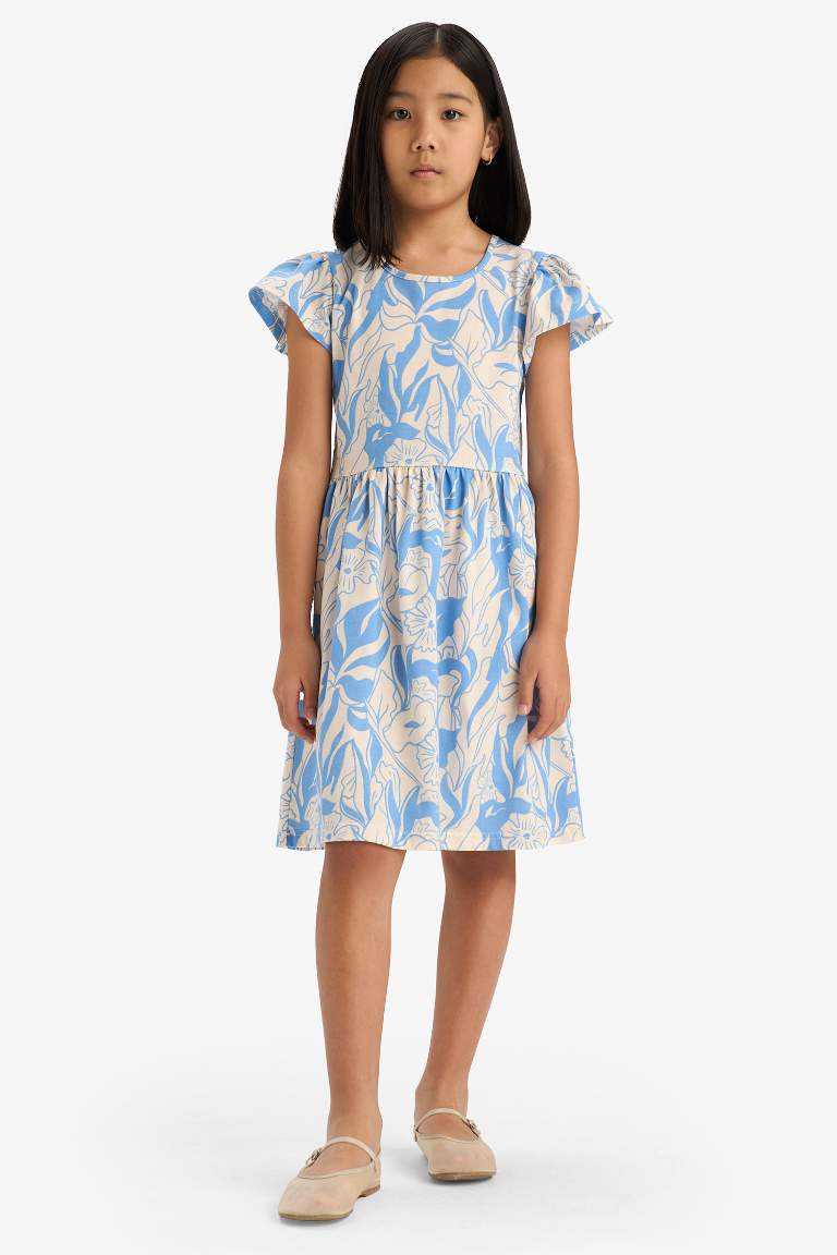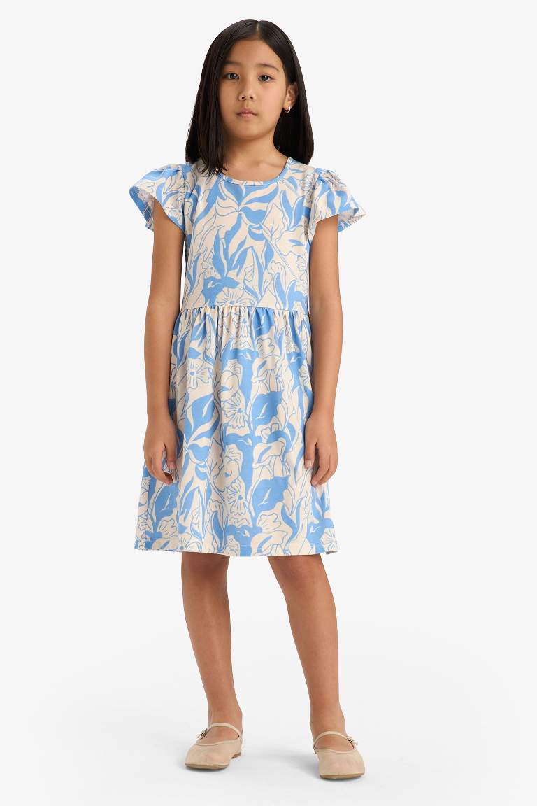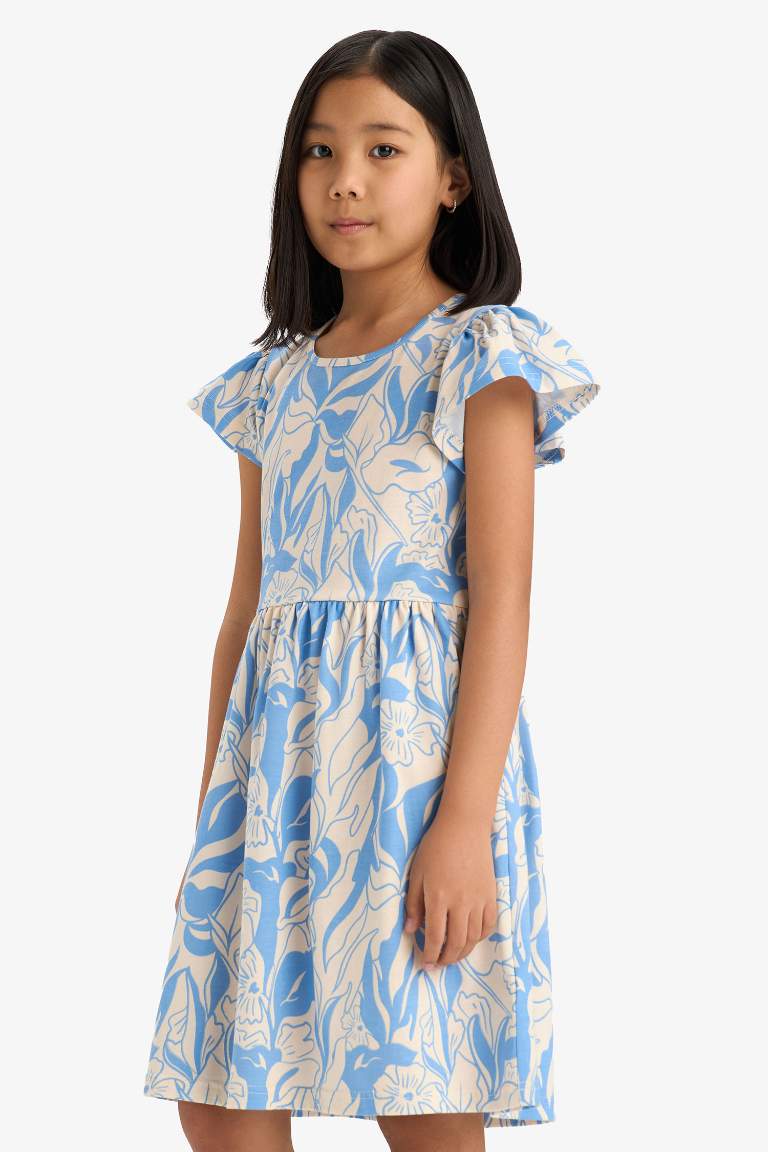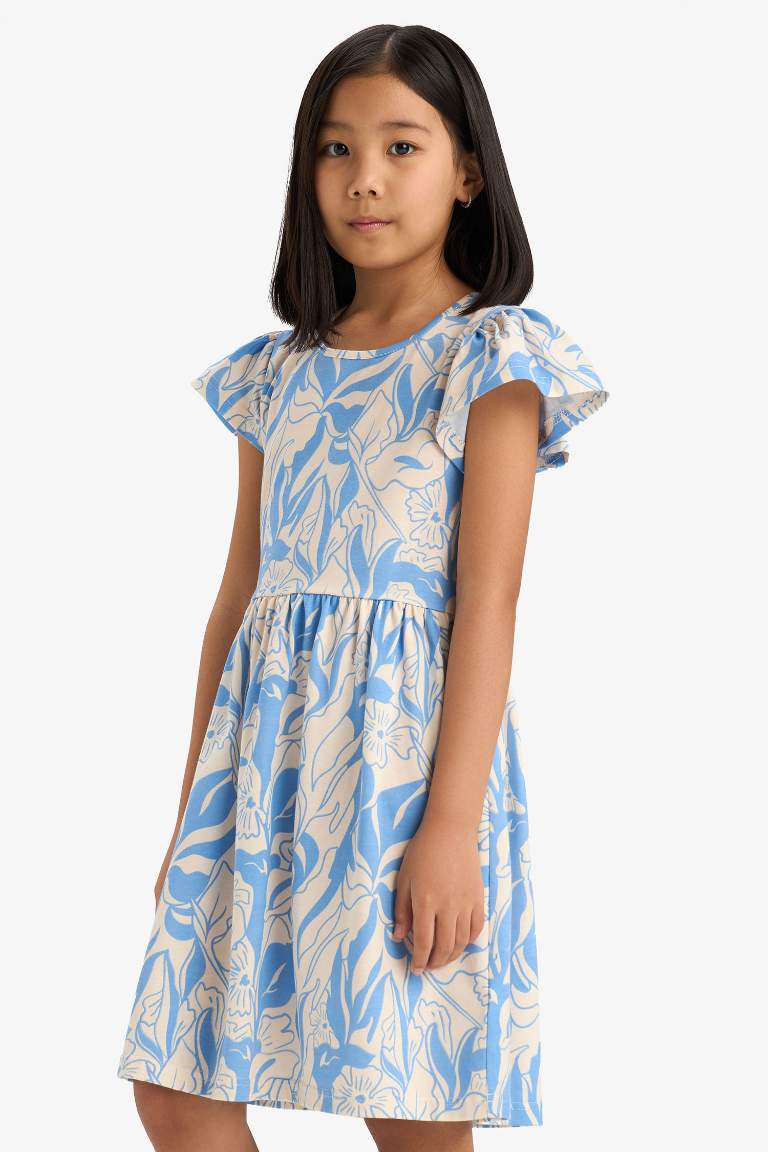 Girls’ Short Sleeve Bicycle Neck Patterned Summer Dress
