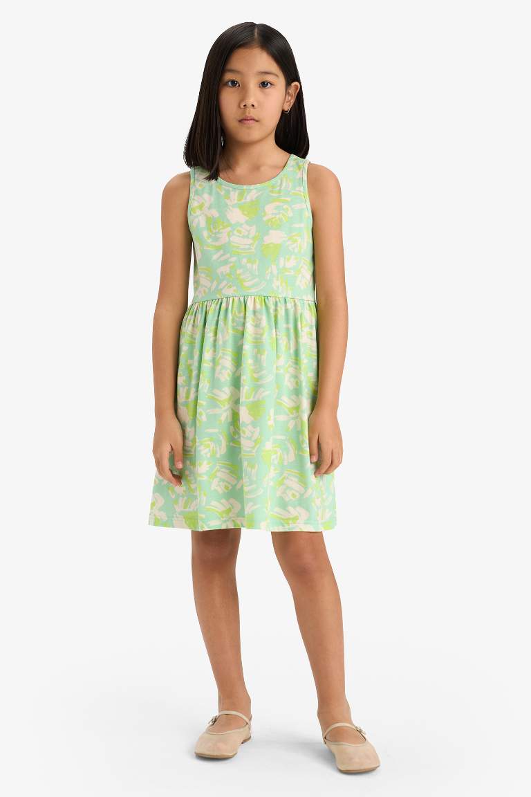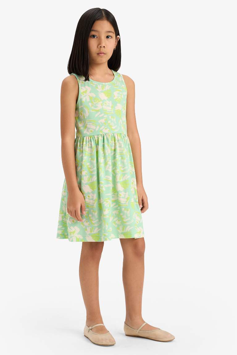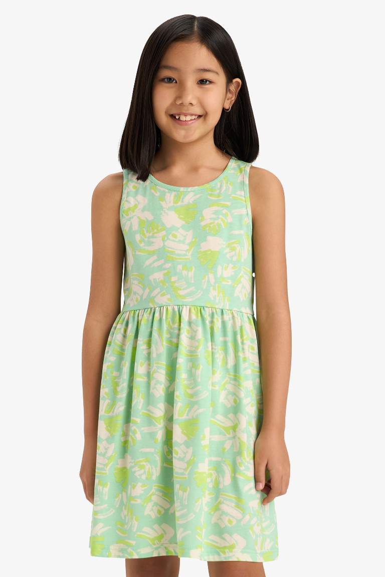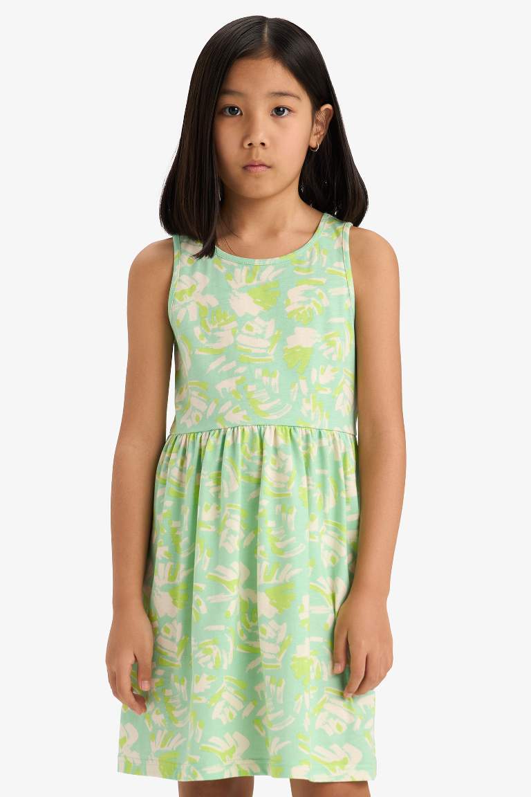 Girls’ Sleeveless Summer Dress with Patterned Round Neck