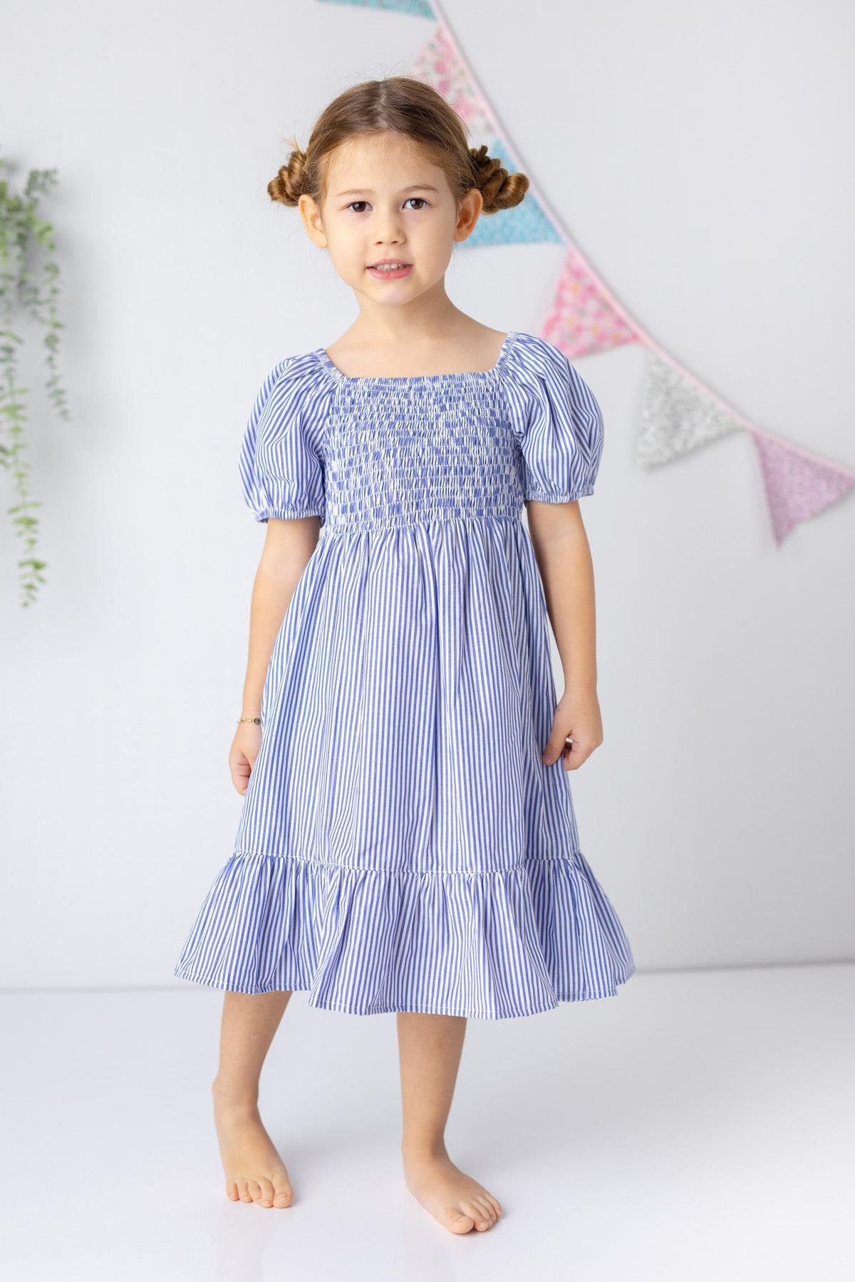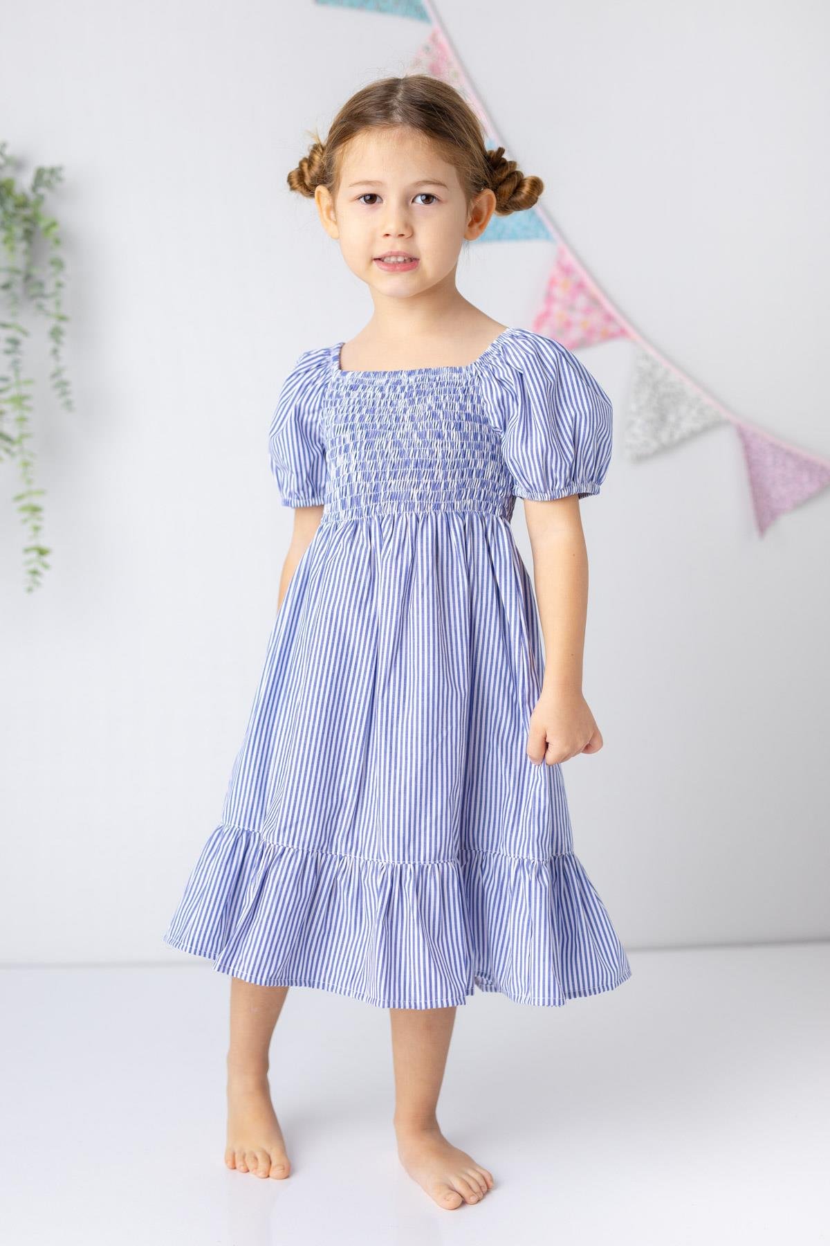 The Girls’ Striped Poplin Midi Dress from the exclusive ZEYLAND collection combines style and comfort for your little ones. Crafted from breathable and flexible fabric, this dress ensures all-day comfort without overheating, making it perfect for any occasion throughout the year. With its chic details, balloon sleeves, and ruffled hem, this dress not only looks fashionable but is also easy to wear with its elastic waist and simple design. Available in various sizes, it’s ideal for dressing up or down, allowing your child to express their unique style while staying comfortable.
