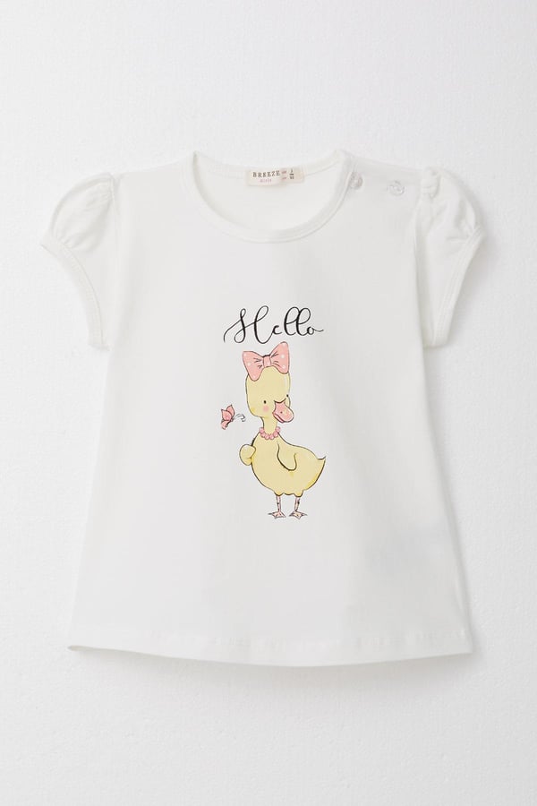 Girls' T-Shirt with Decorative Bow and Duck Print in Ecru (Ages 1-3)