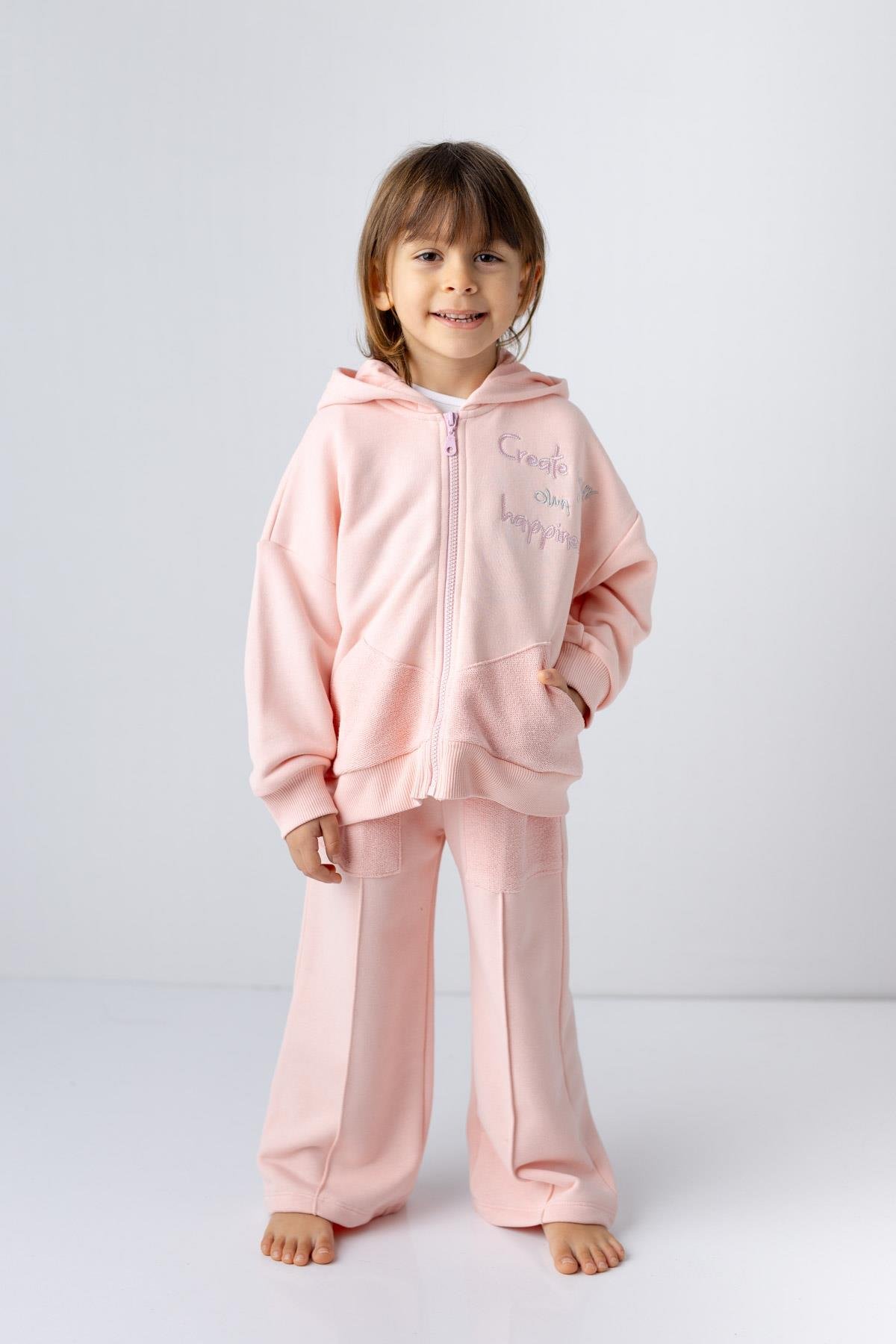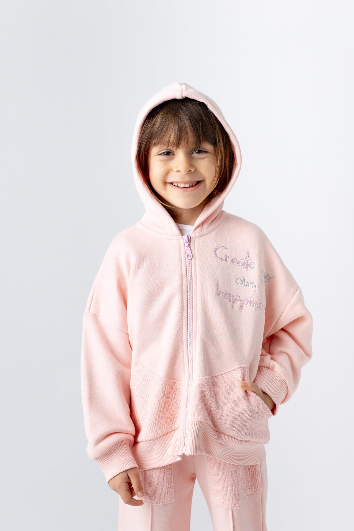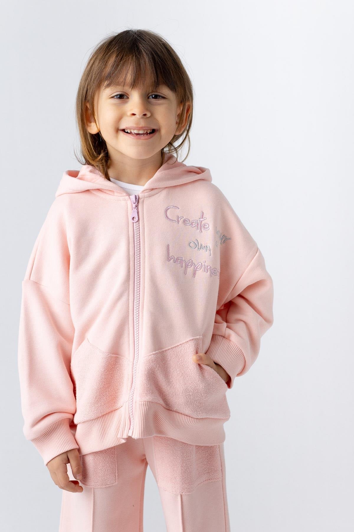 This stylish girls’ zip-up tracksuit set is perfect for active days! Made from a comfortable blend of 65% cotton and 35% polyester, it features a cozy hooded sweatshirt with ribbed cuffs and pockets, complemented by relaxed-fit sweatpants with a ribbed waistband. Ideal for playdates or lounging at home, this outfit combines both style and comfort, making it a must-have in every young girl’s wardrobe.