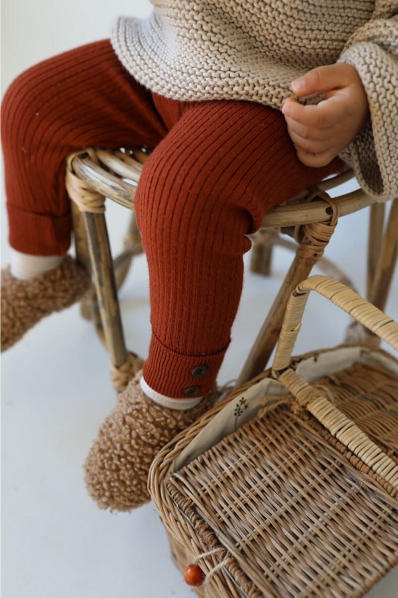Gogo Bici Button Detail Ribbed Baby Knit Leggings