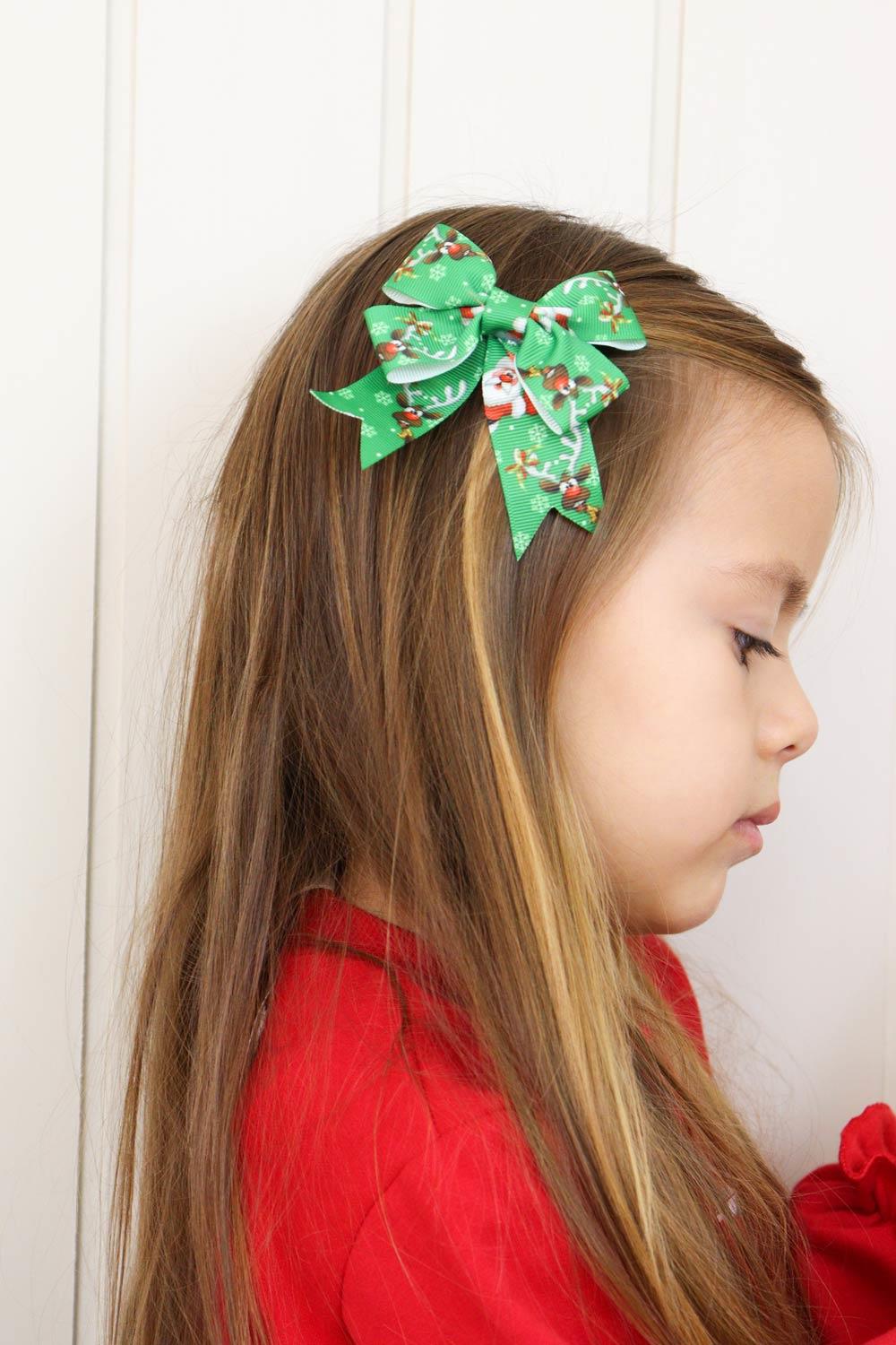 Green Santa Claus Patterned 2-Pack Bow Hair Clips for Girls