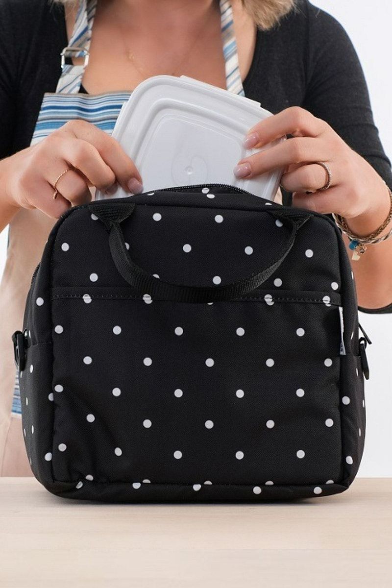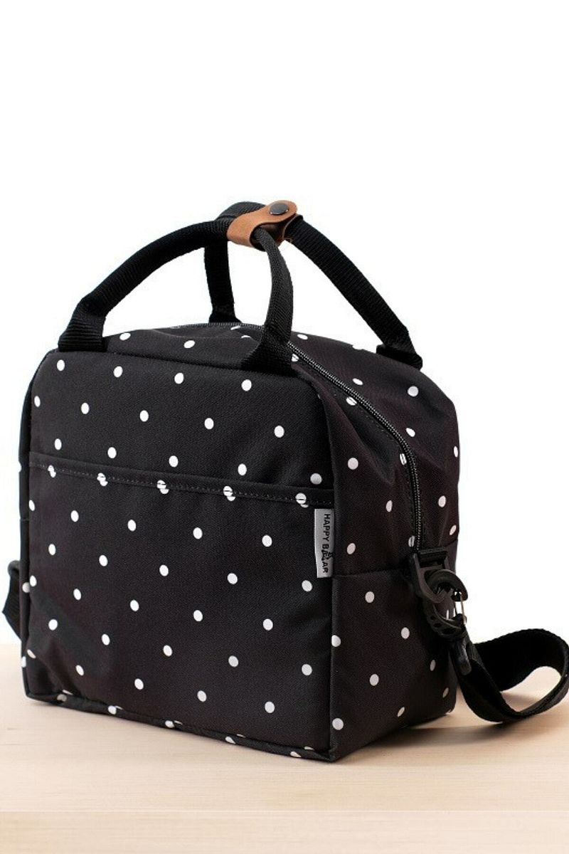 Happy Bear Thermal Lunch Bag Insulated Waterproof Black Polka Dot