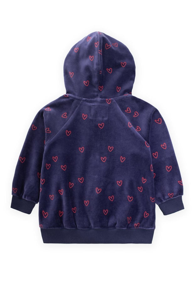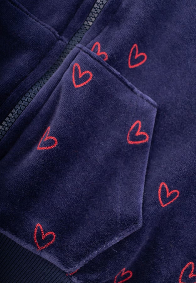 Heart Patterned Velvet Zippered Sweatshirt for Ages 2-8 in Navy
