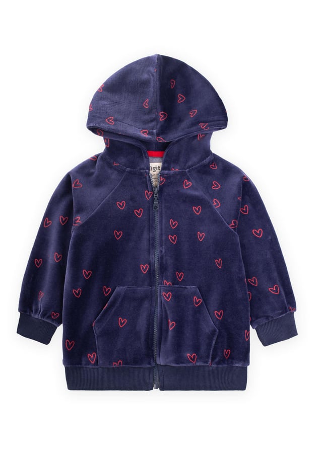 Keep your little ones cozy and stylish during chilly winter days with this heart patterned velvety zippered sweatshirt. Crafted from a soft and breathable fabric blend of 70% polyester and 30% cotton, this sweatshirt offers the perfect combination of comfort and warmth. Its gentle texture is ideal for sensitive skin, making it a delightful choice for everyday wear. Easy to care for, simply machine wash on a short cycle at a maximum of 30ºC to maintain its vibrant colors and plush feel.