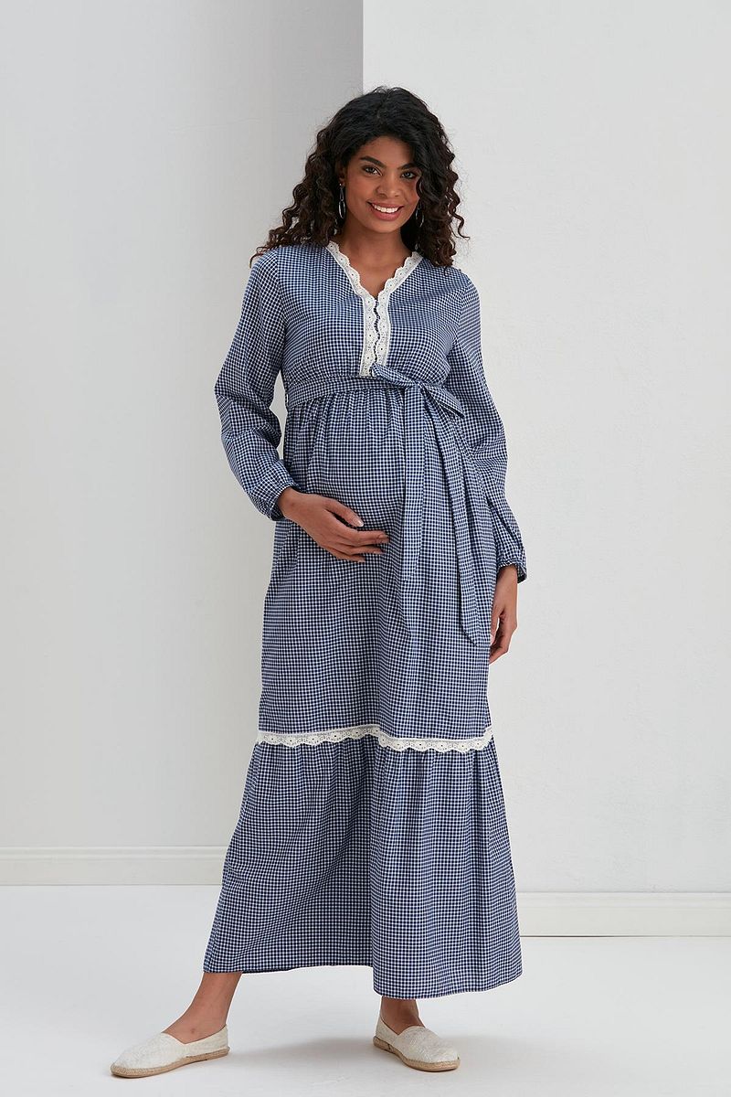 Ishsil M057 Mini Square Lace Cotton Maternity Maxi Dress