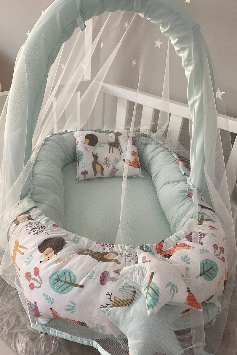Jaju Baby Cute Forest Baby Nest with Canopy and Toy Hanger