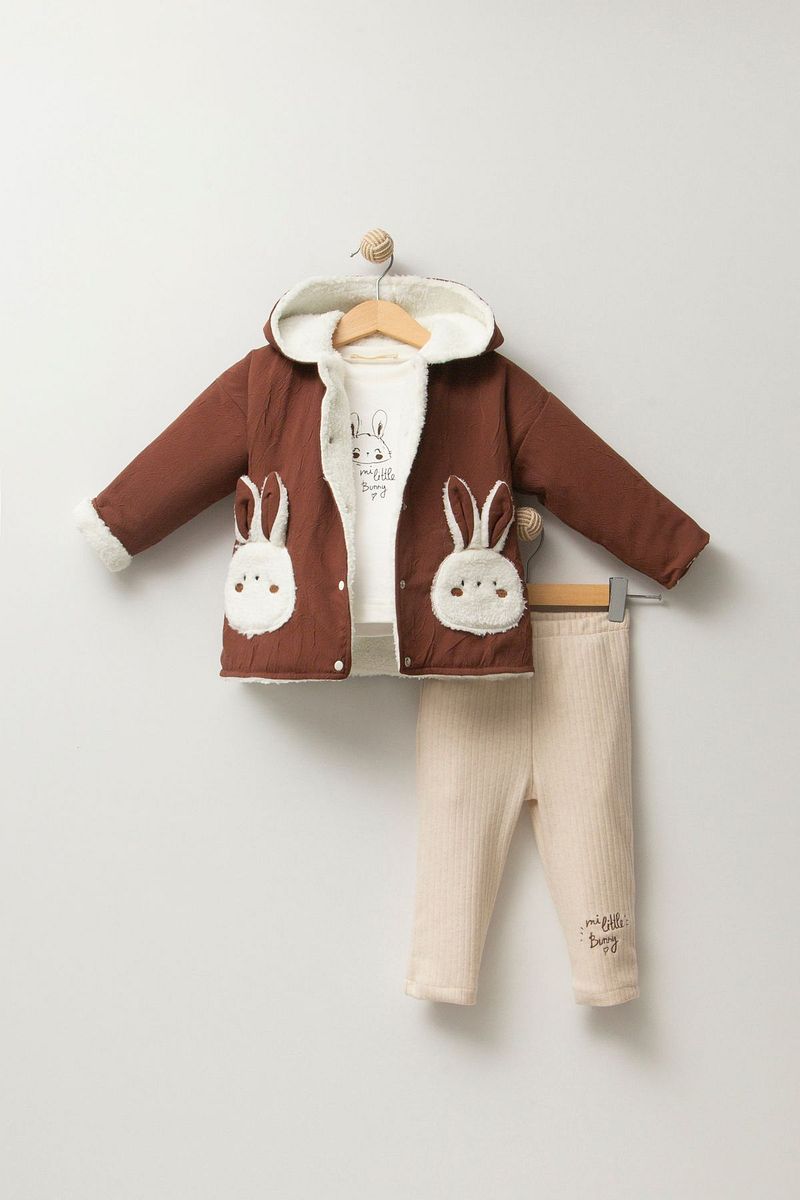 Jikko Baby Rabbit Patterned Welsoft Jacket 3-Piece Winter Set