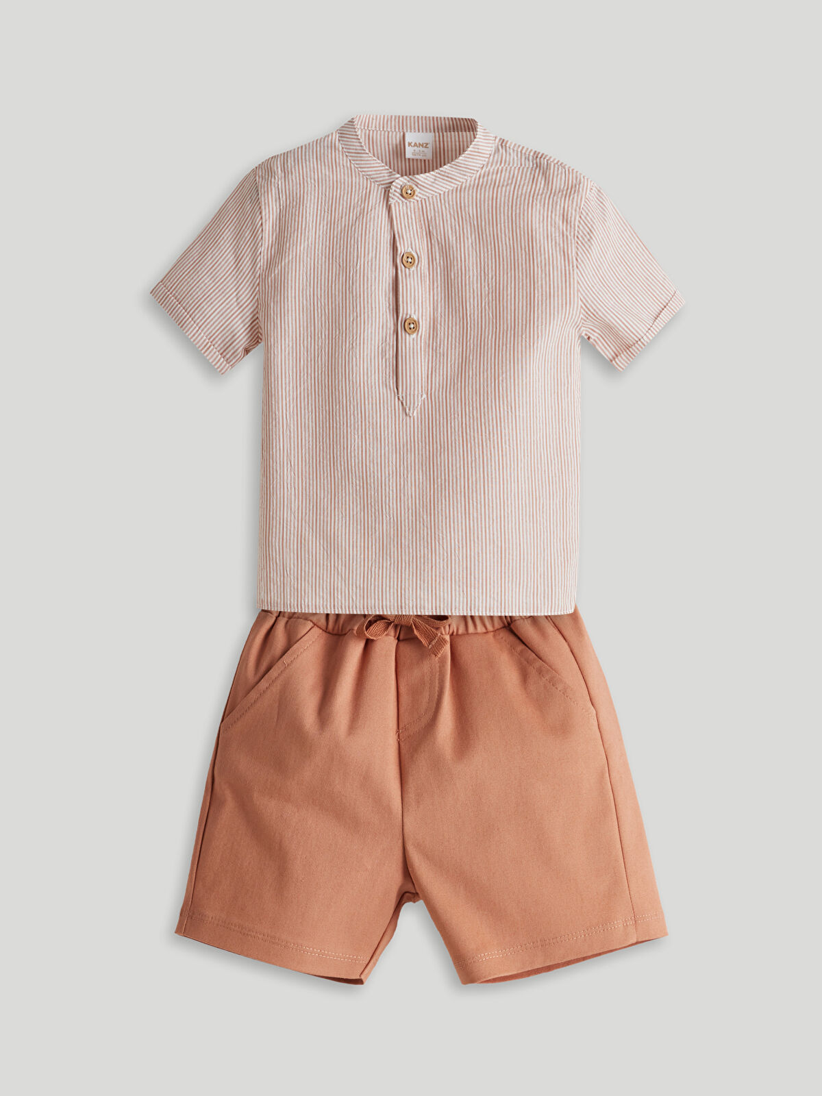 KANZ Ecru Striped Baby Boy Shirt and Shorts Set