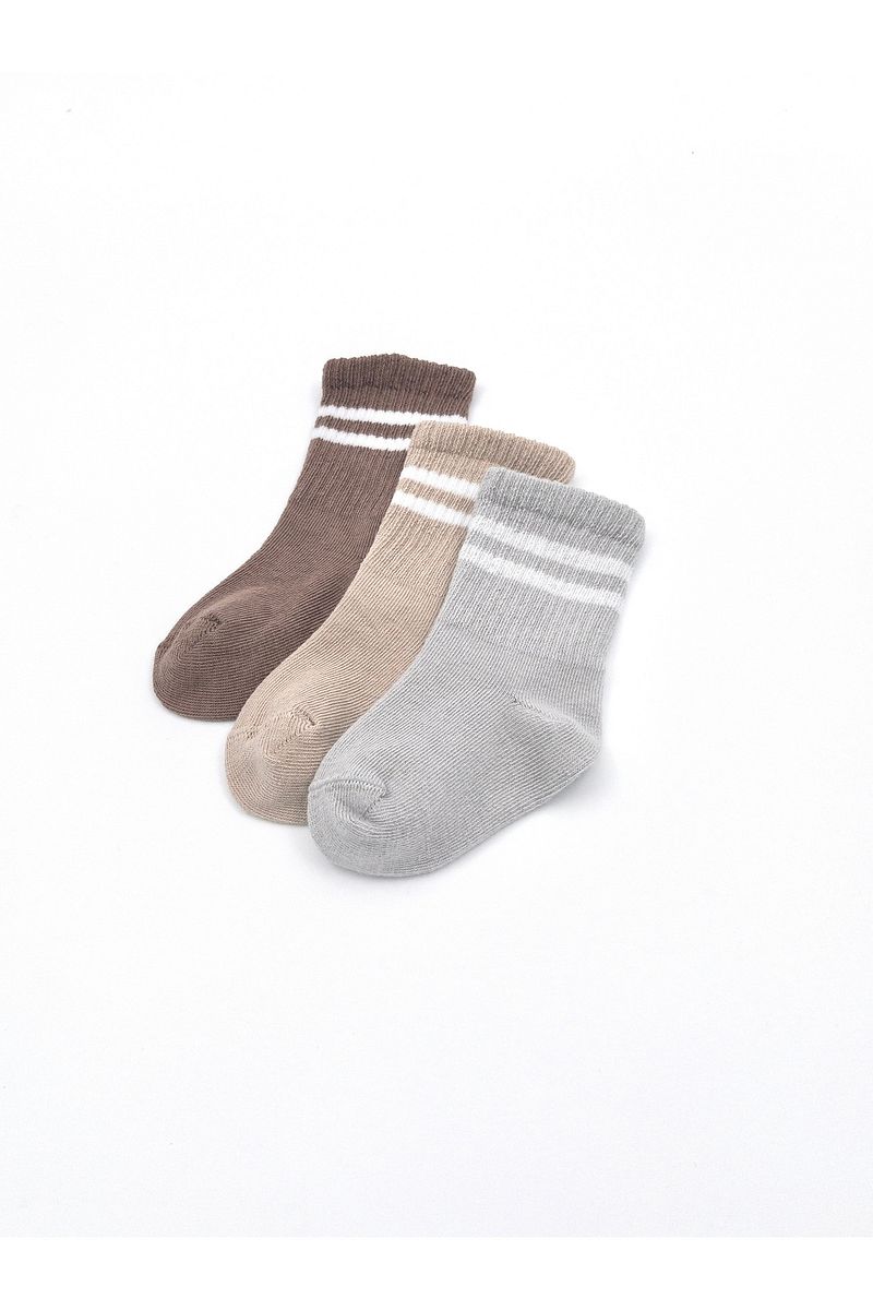 KARAMİLA Set of 3 Cotton Baby Socks / Striped Children's Socks