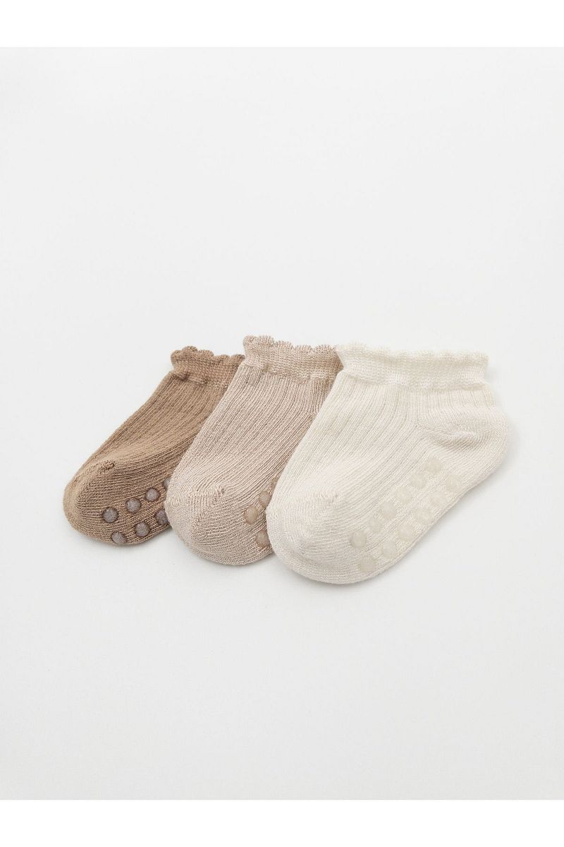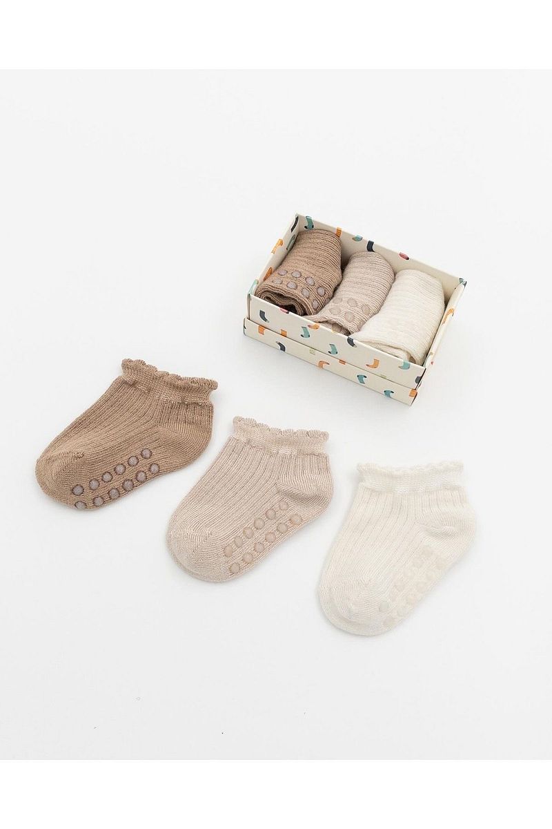 KARAMİLA Set of 3 Girls' Short Bamboo Socks with Non-Slip Silicone Base