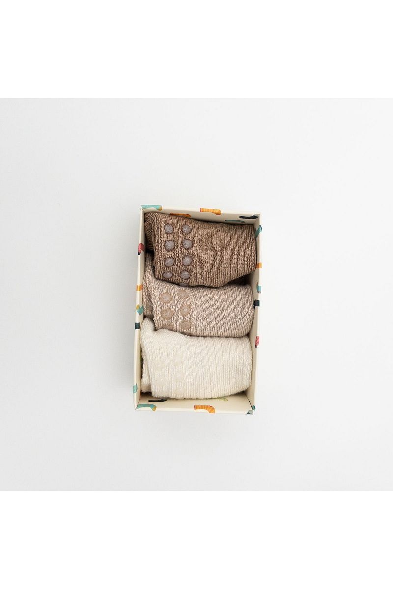 KARAMİLA Set of 3 Girls’ Short Bamboo Socks with Non-Slip Silicone Base