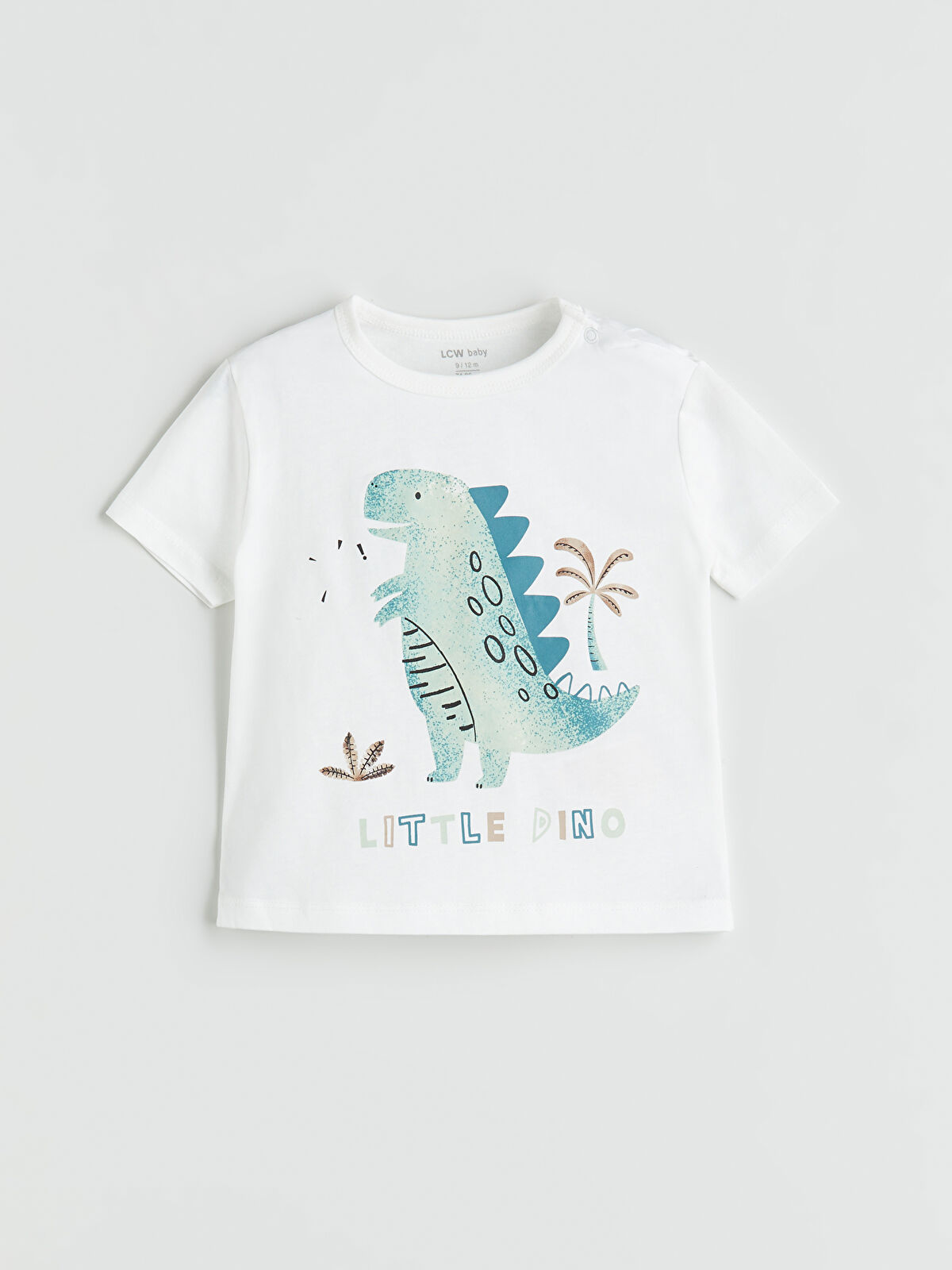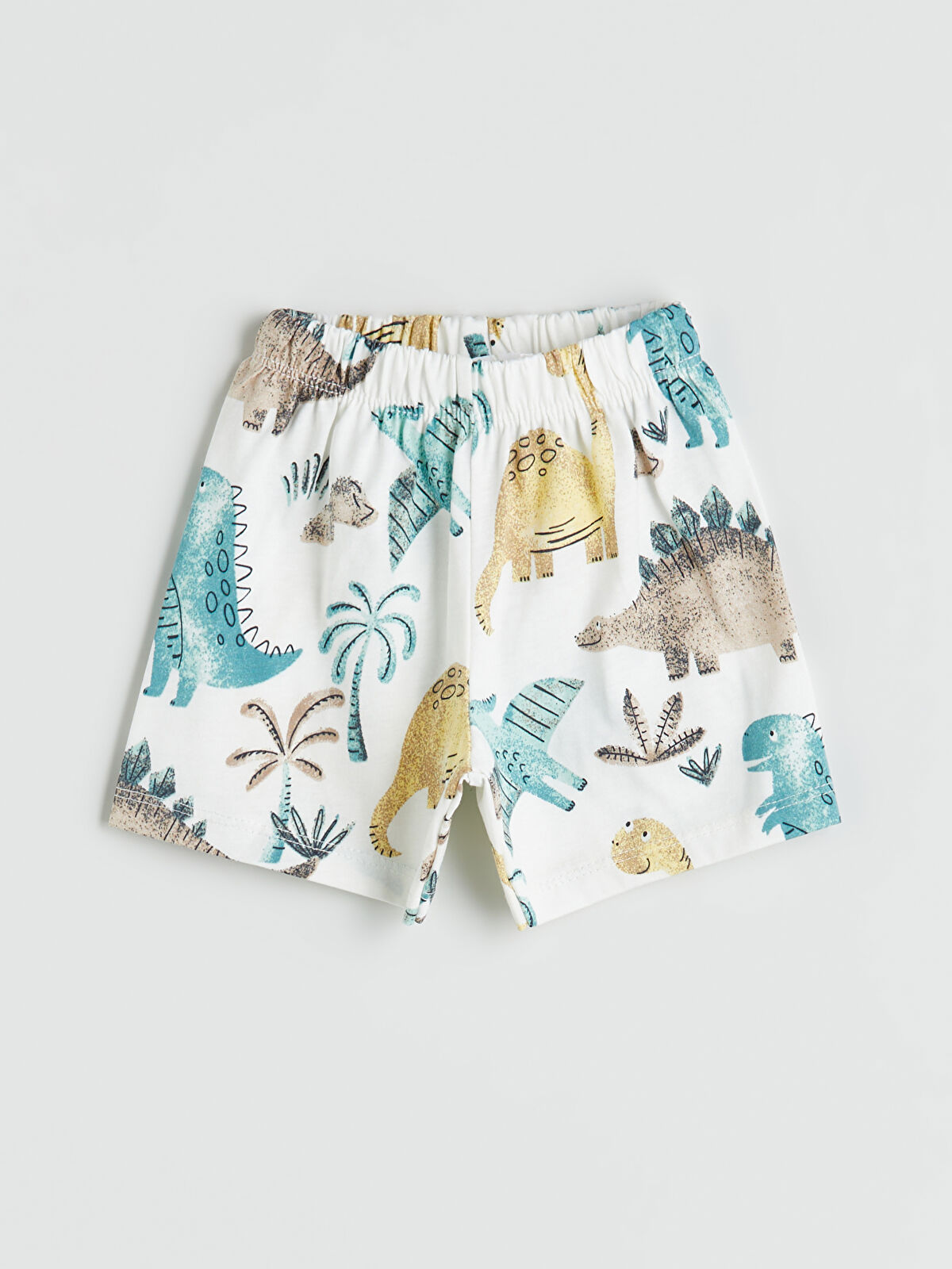 LCW Baby Cream Dinosaur Print Short Sleeve Pajama Set for Boys