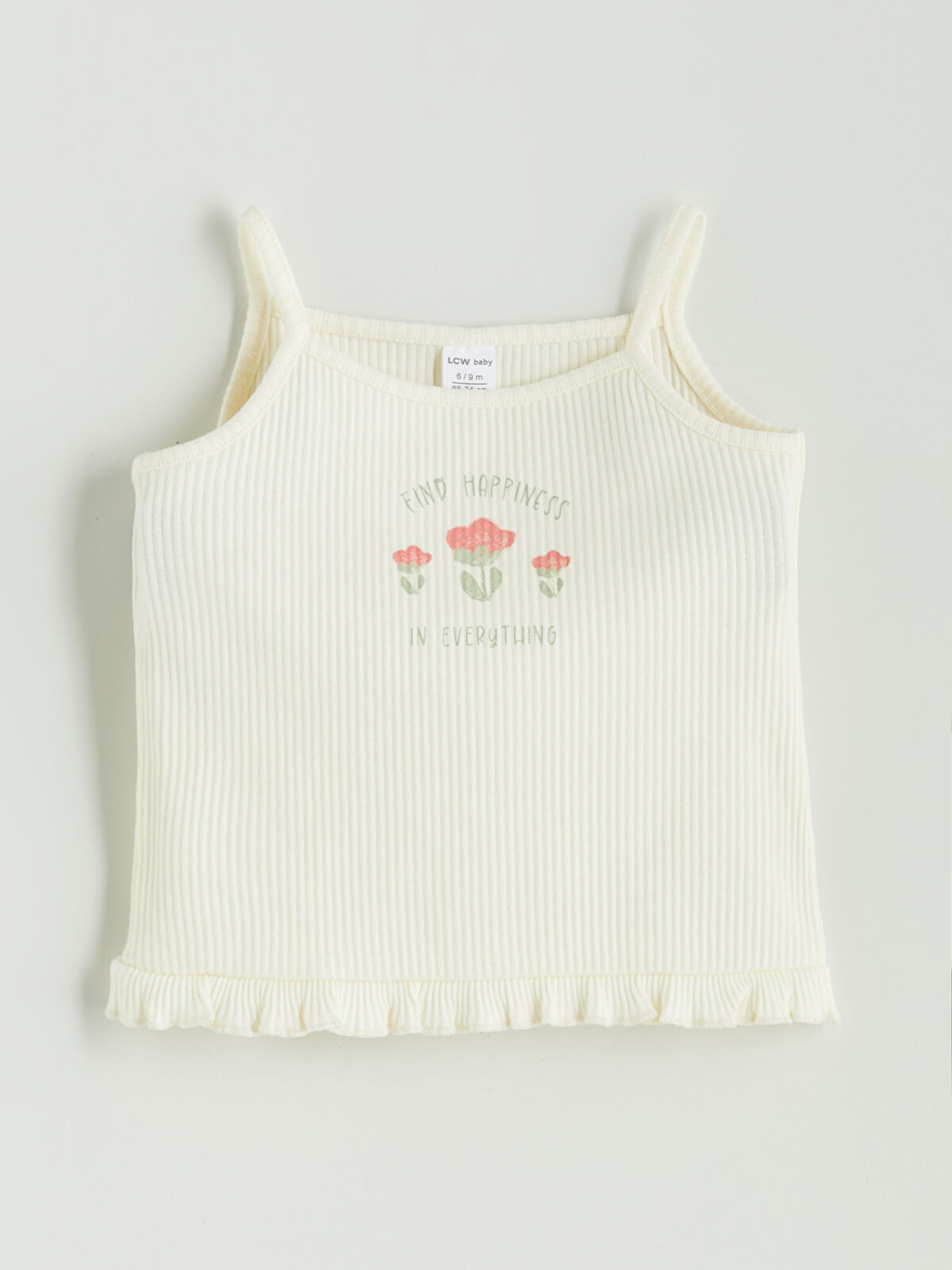 LCW Baby Ivory Square Neck Floral Strap Top Set