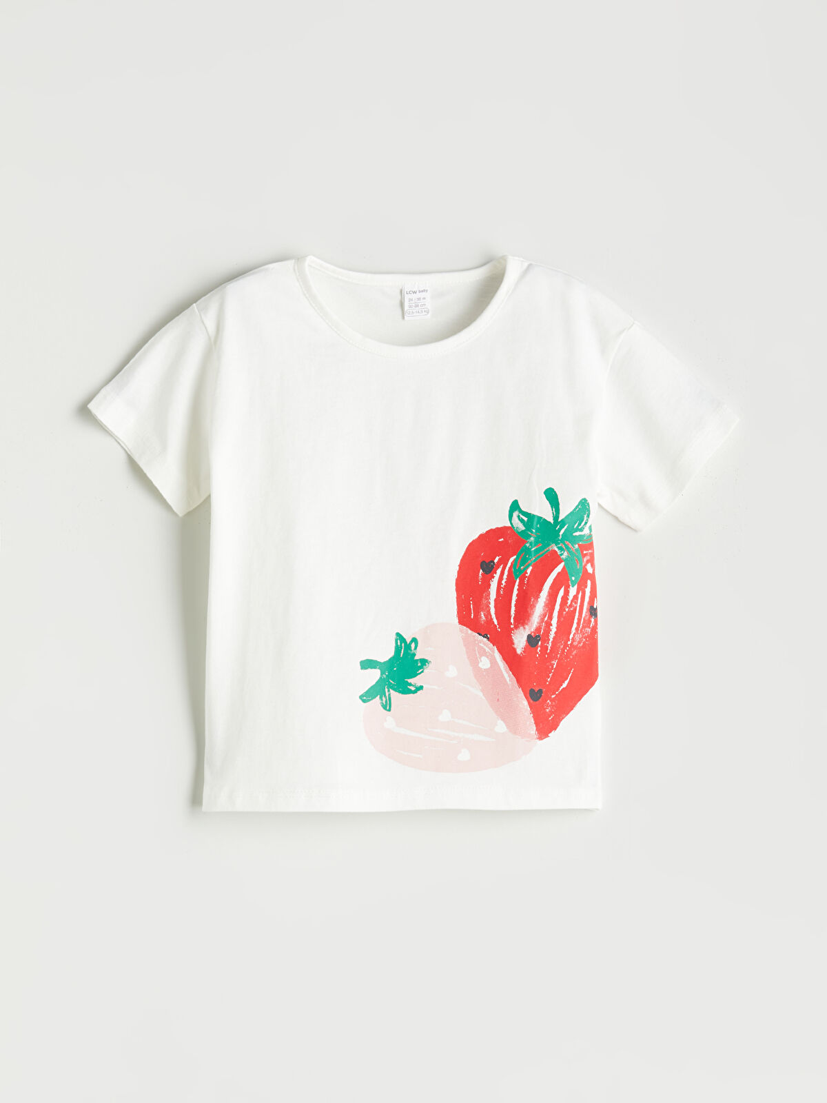 LCW Baby Off-White Strawberry Print T-Shirt and Shorts Set
