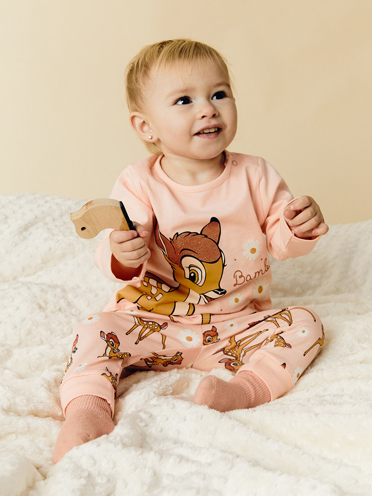 LCW Baby Pink Bambi Print Girls’ Pajama Set