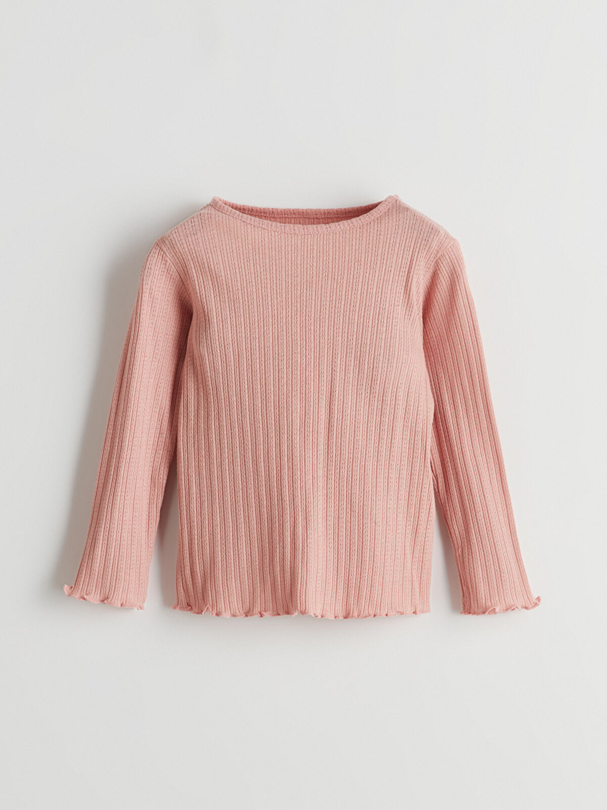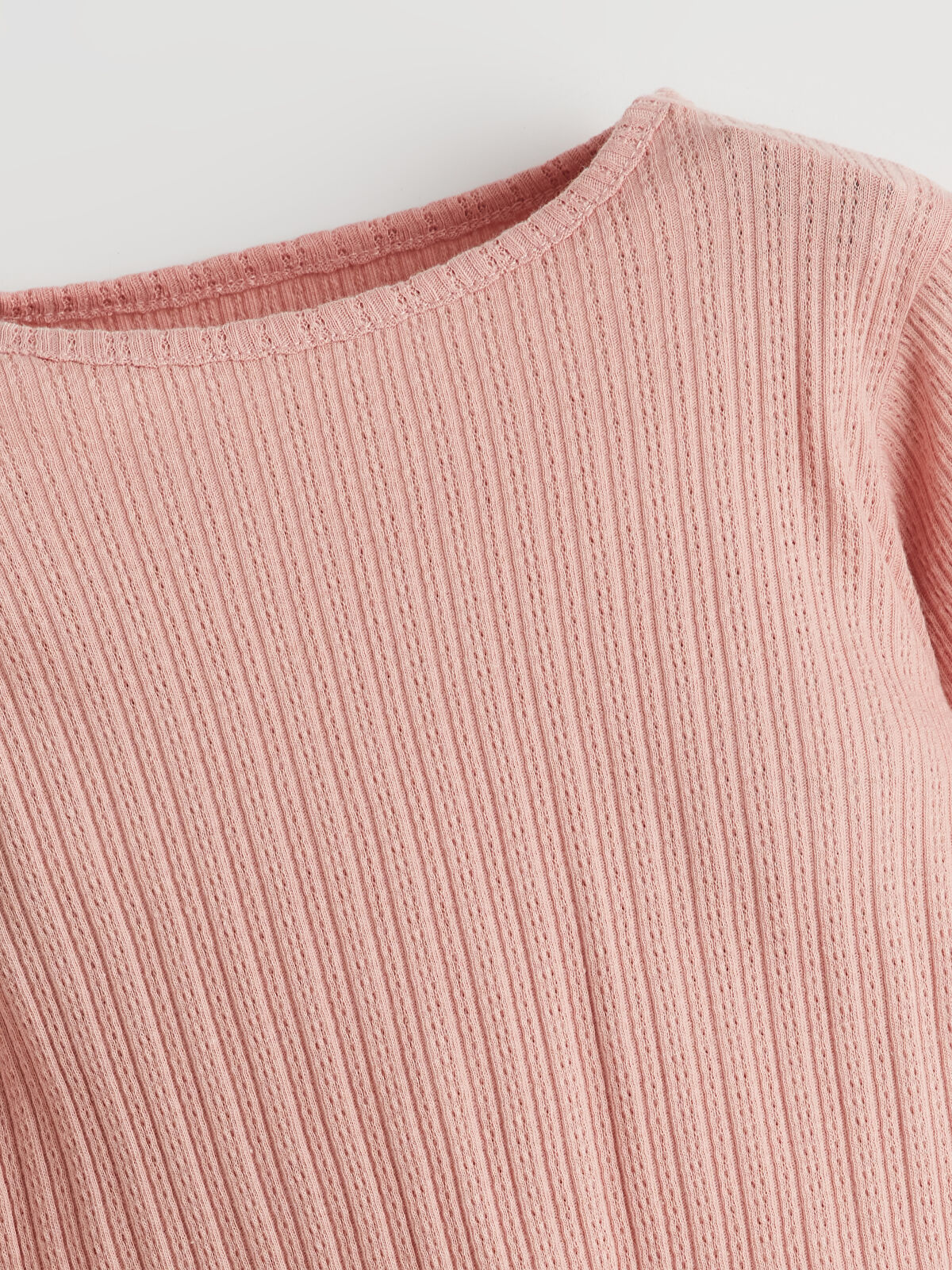 LCW Baby Pink Long Sleeve Basic Pajama Set for Girls