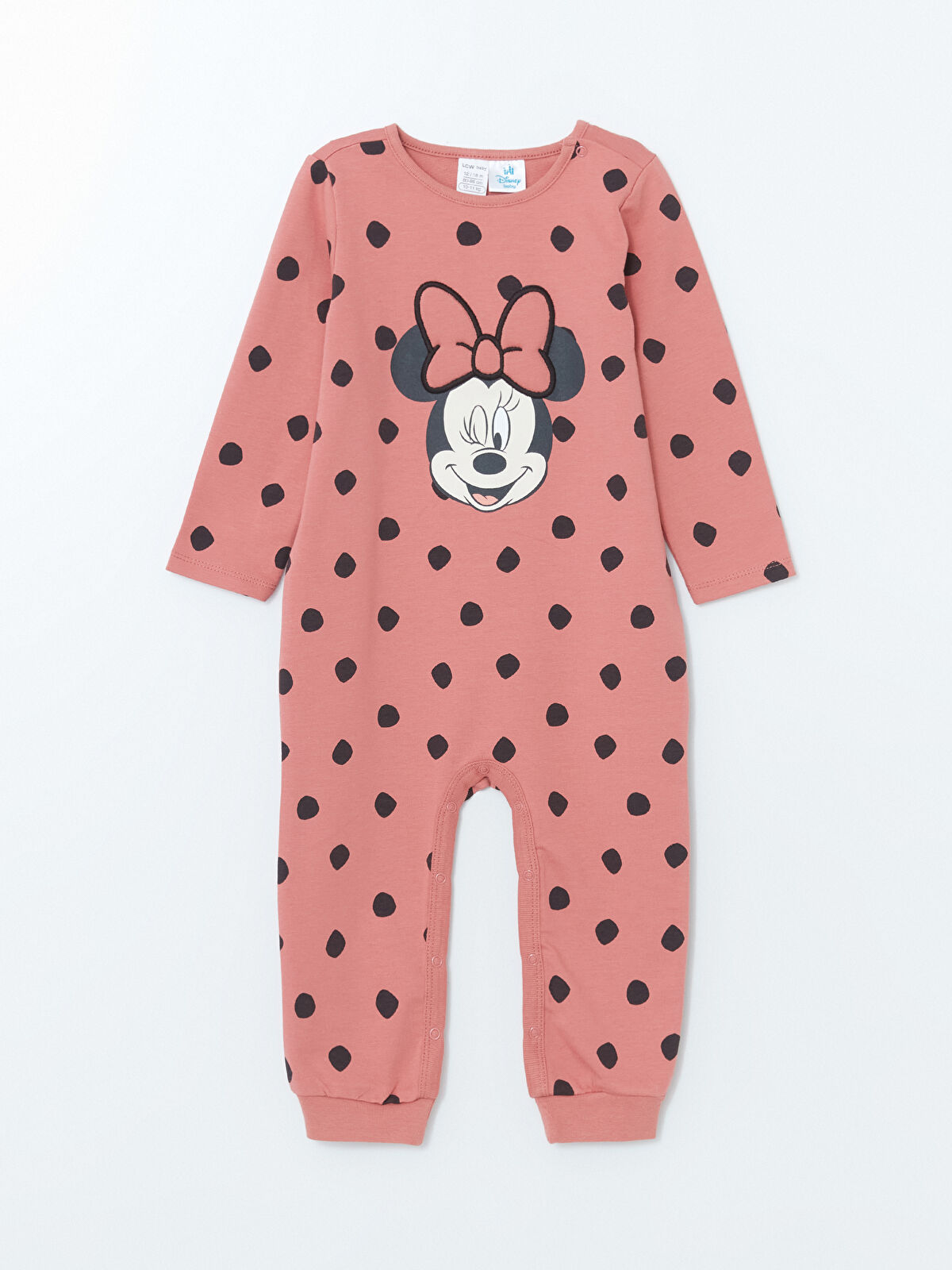 Dress your little one in this adorable Minnie Mouse licensed romper, crafted from a soft, high cotton content fabric for ultimate comfort. Featuring a classic round neckline and long sleeves adorned with a playful polka dot pattern, this romper is both stylish and practical with snap closures at the shoulder and bottom for easy dressing. Perfect for everyday wear or special occasions, this charming piece will keep your baby girl looking cute and feeling cozy all day long.