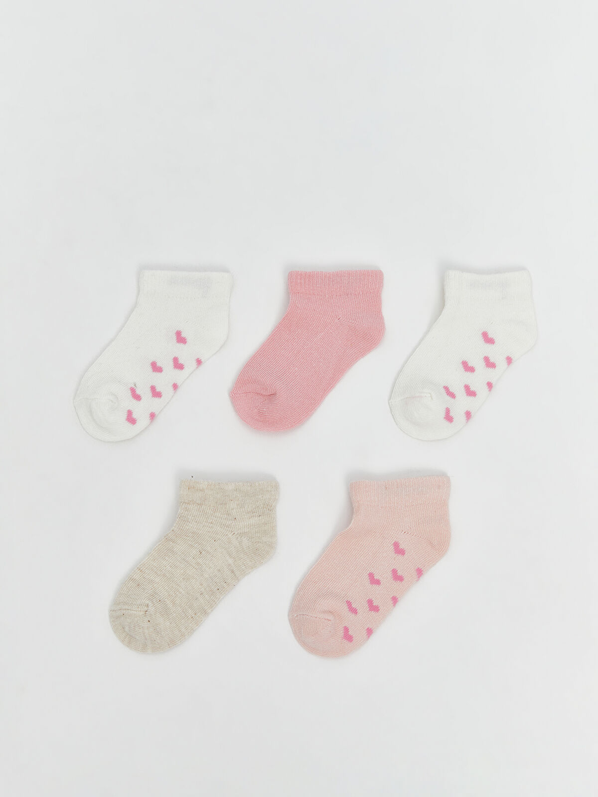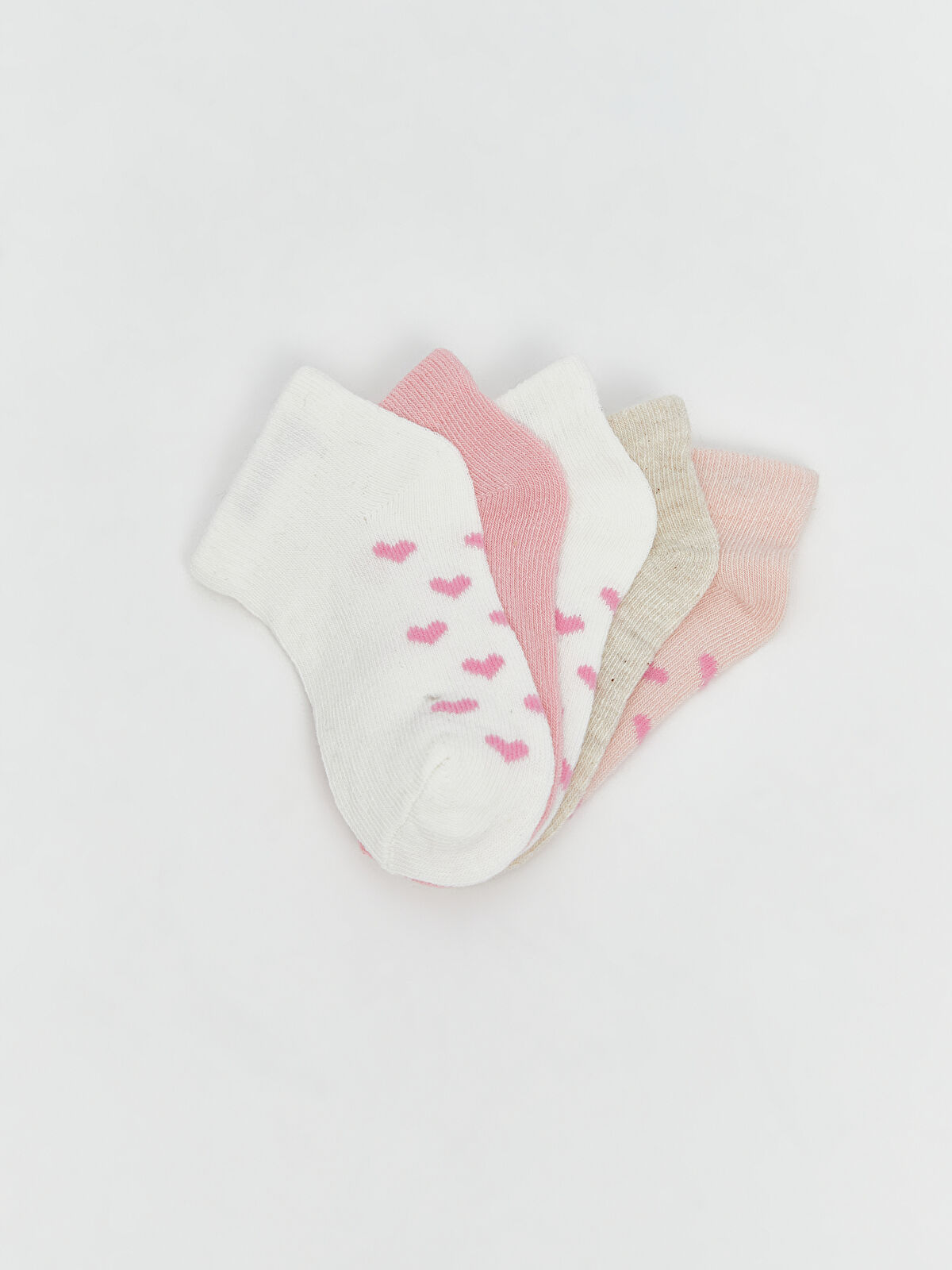 LCW Baby Pink Printed Girl's Baby Bootie Socks Set of 5