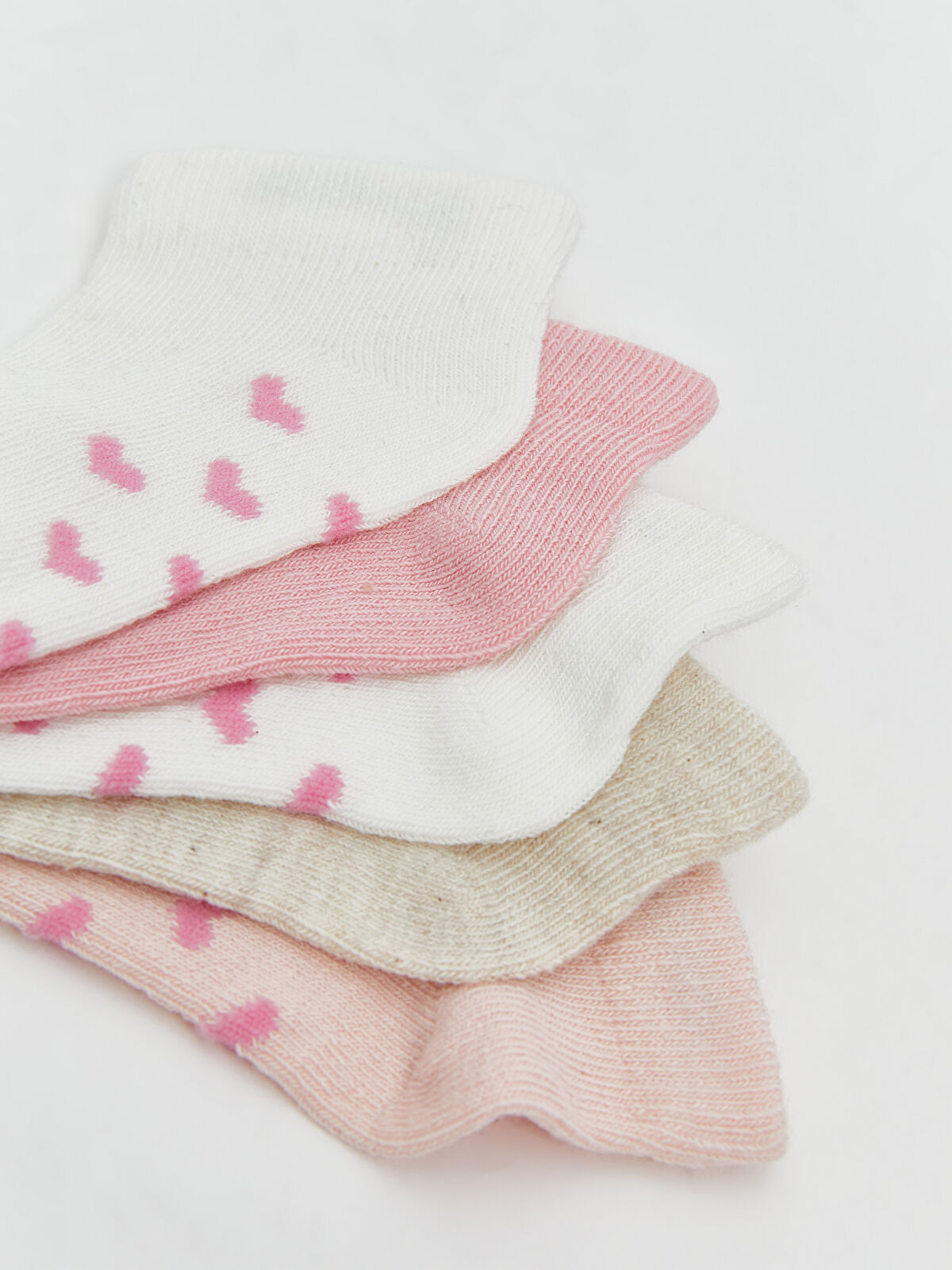 LCW Baby Pink Printed Girl’s Baby Bootie Socks Set of 5