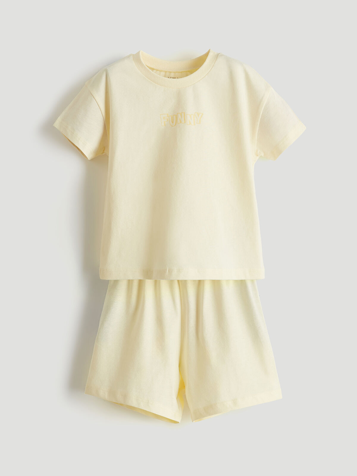 Dress your little one in comfort and style with this adorable LCW Baby set, featuring a soft, 100% cotton t-shirt with a charming round neckline and short sleeves, complemented by elastic waistband shorts. Perfect for playtime or lounging, this versatile outfit is designed for active baby boys, ensuring they stay comfortable throughout the day. The bright yellow color adds a cheerful touch, making it an essential addition to your baby’s wardrobe.