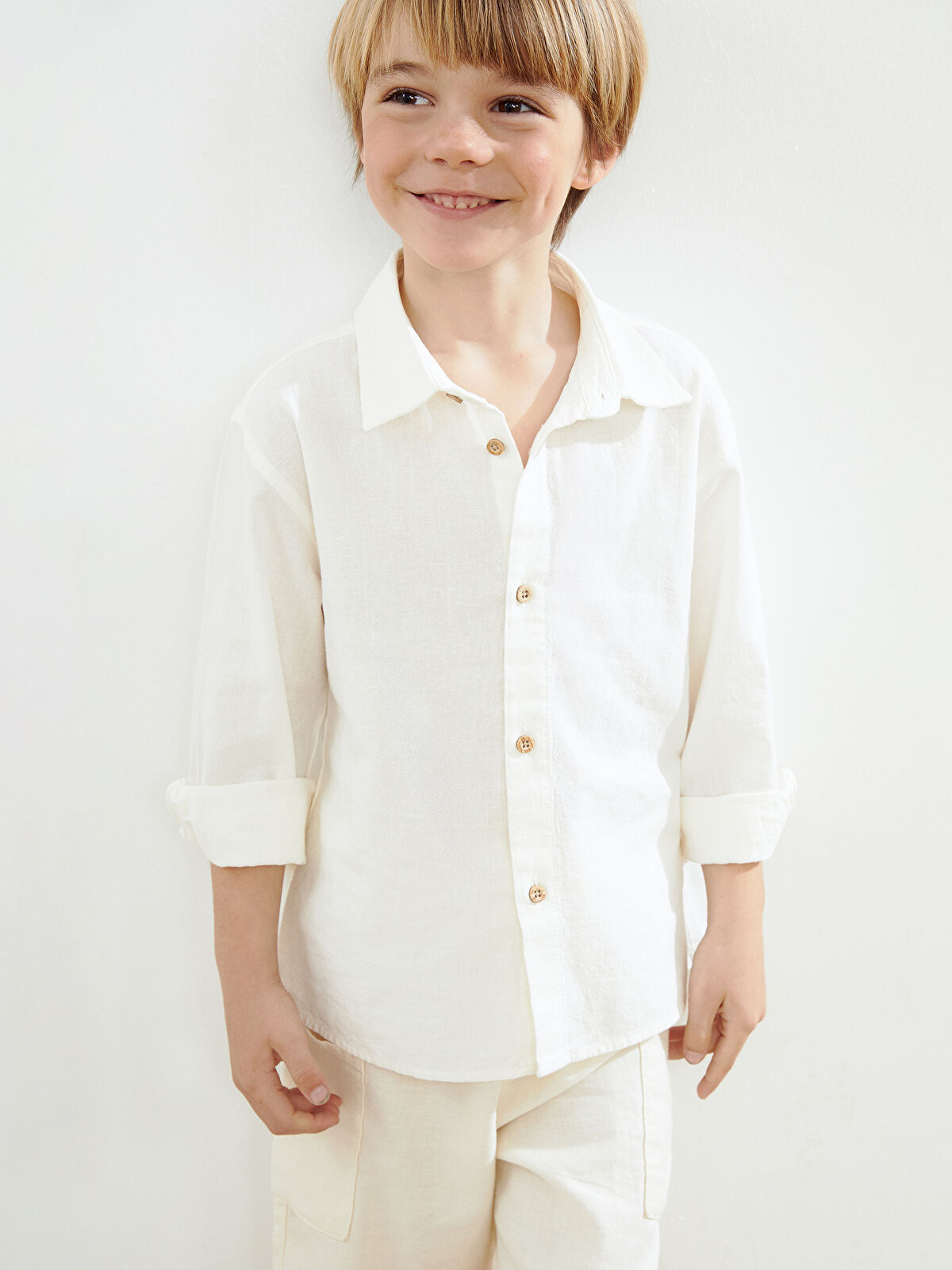 LCW Kids Cream Basic Long Sleeve Boys’ Shirt