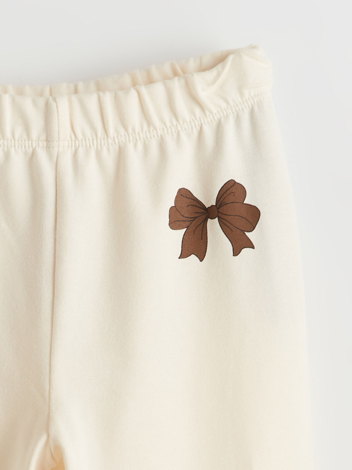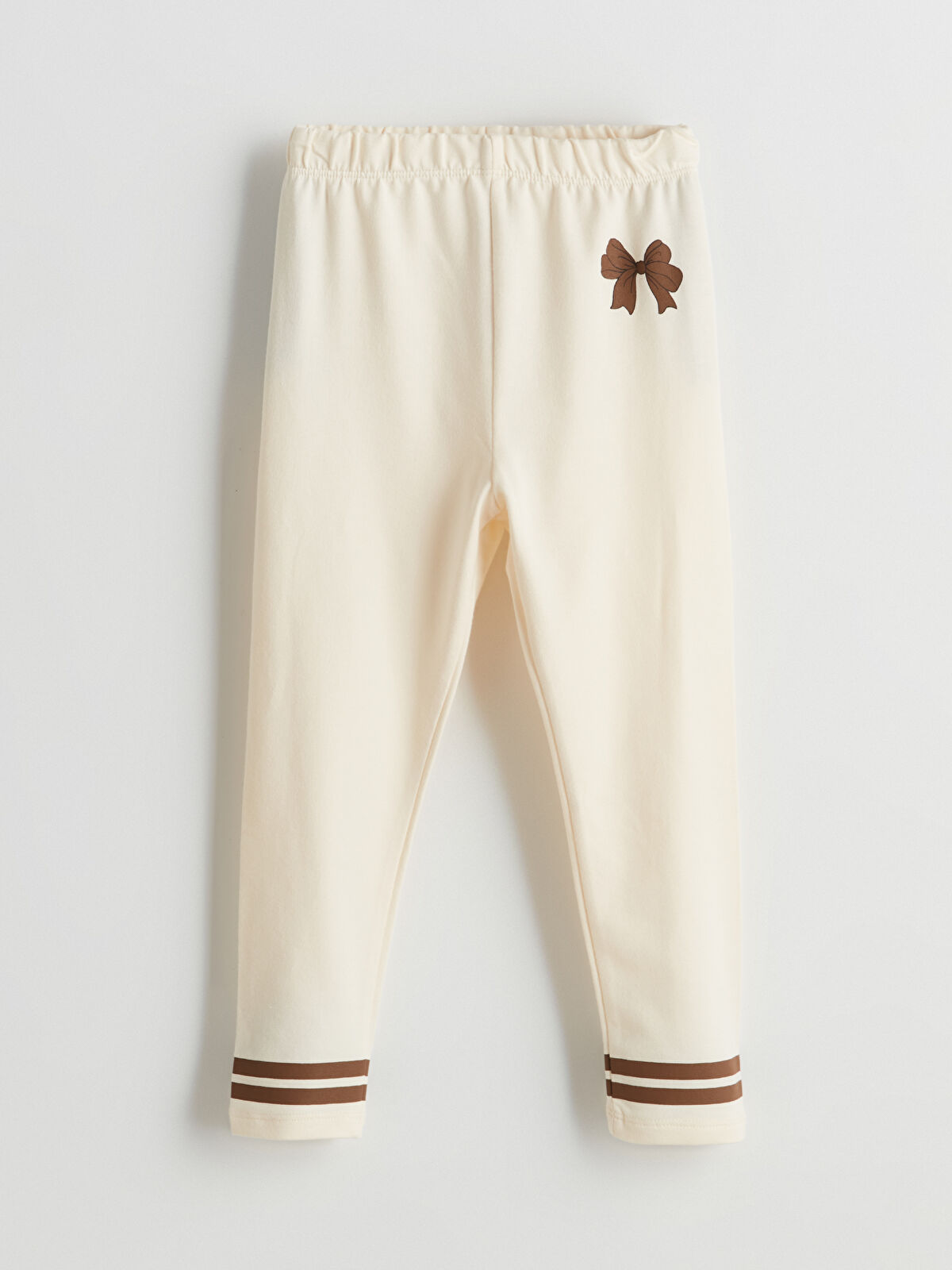 LCW Kids Cream Elastic Waistband Bow Detail Girls' Leggings - Set of 2