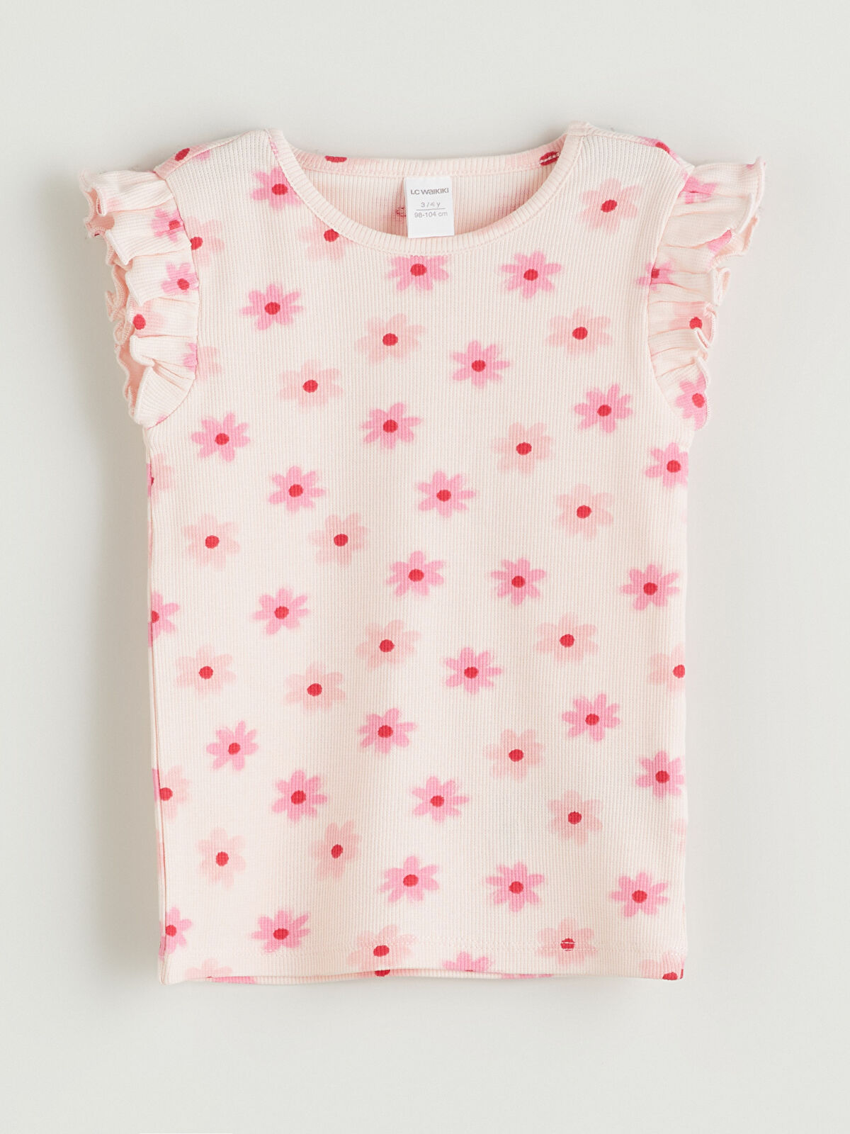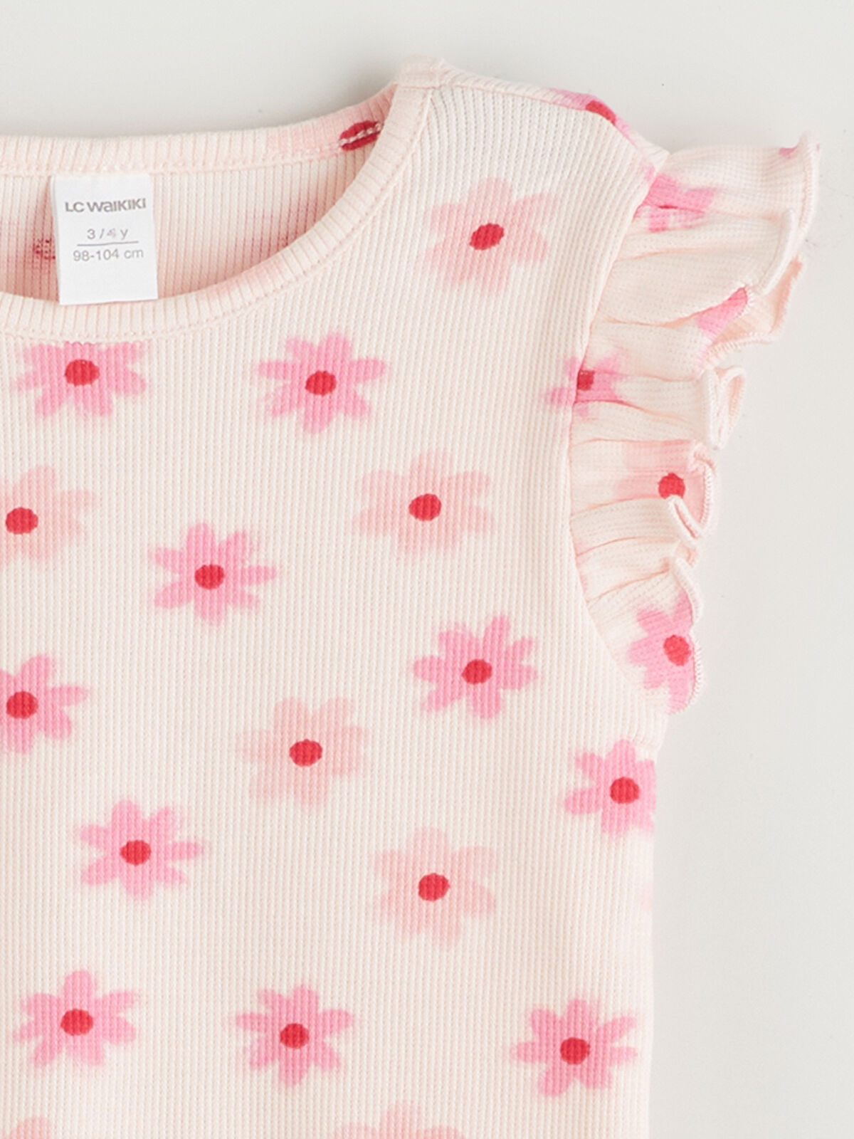 LCW Kids Cream Floral Print Girls' Sleeveless Top Set