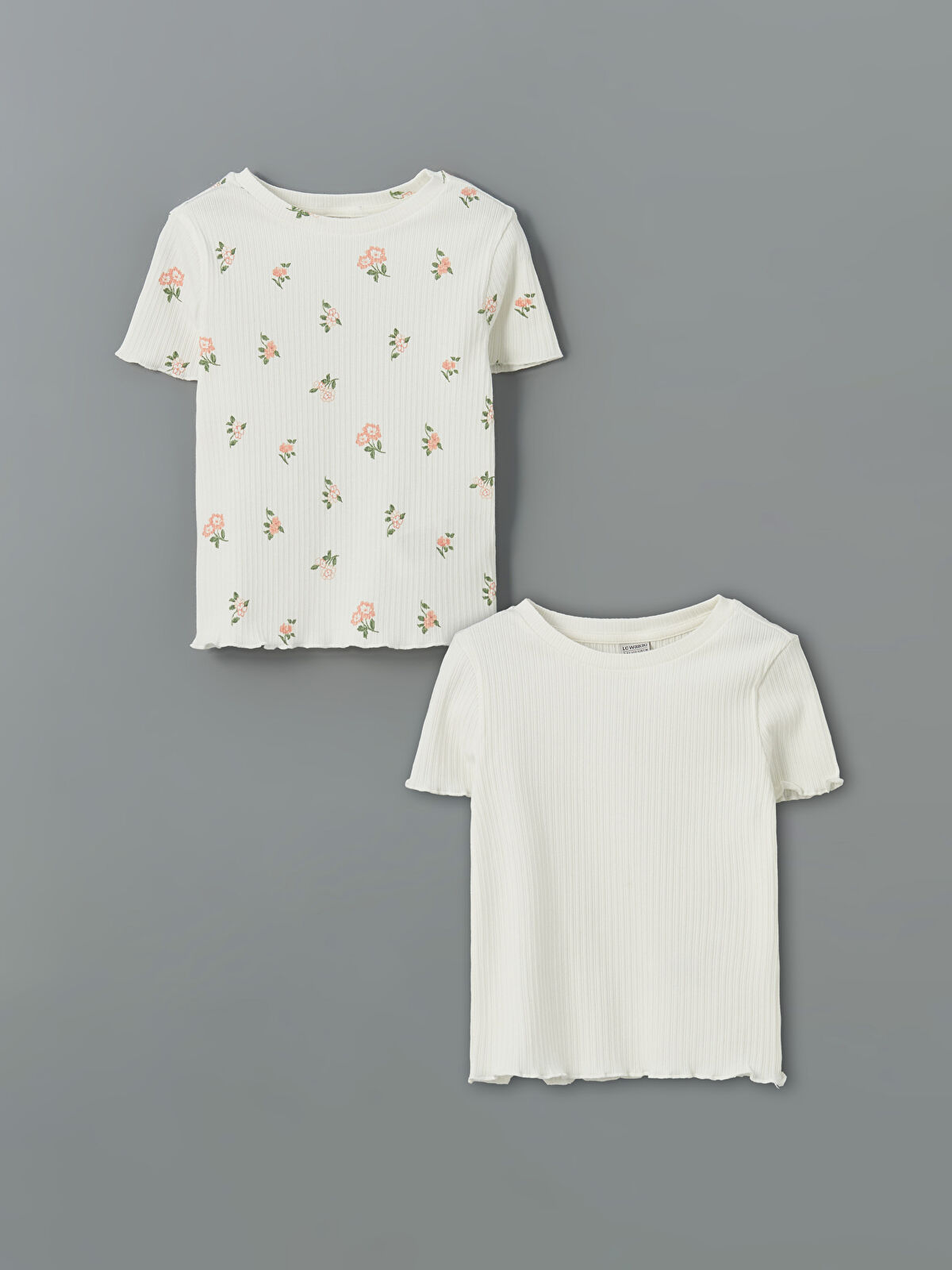 LCW Kids Cream Floral Print Girls T-Shirt Set