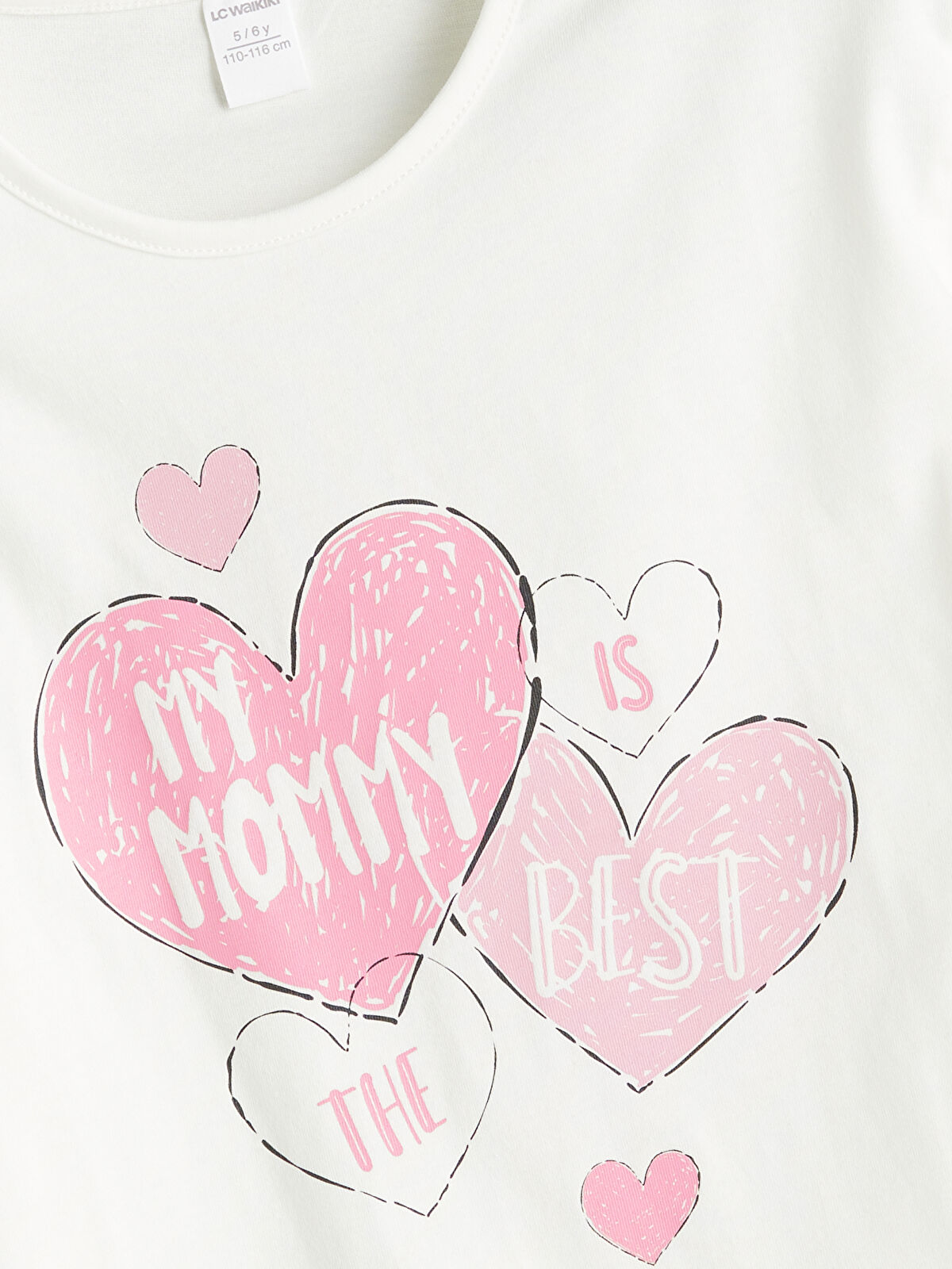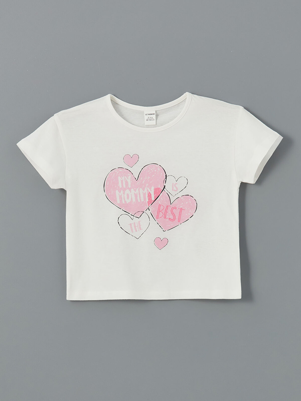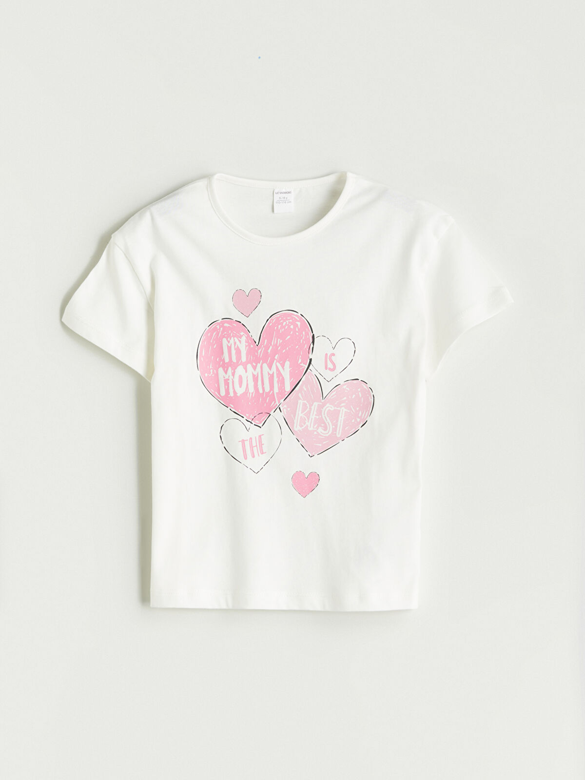 LCW Kids Cream Printed Crew Neck T-Shirt for Girls