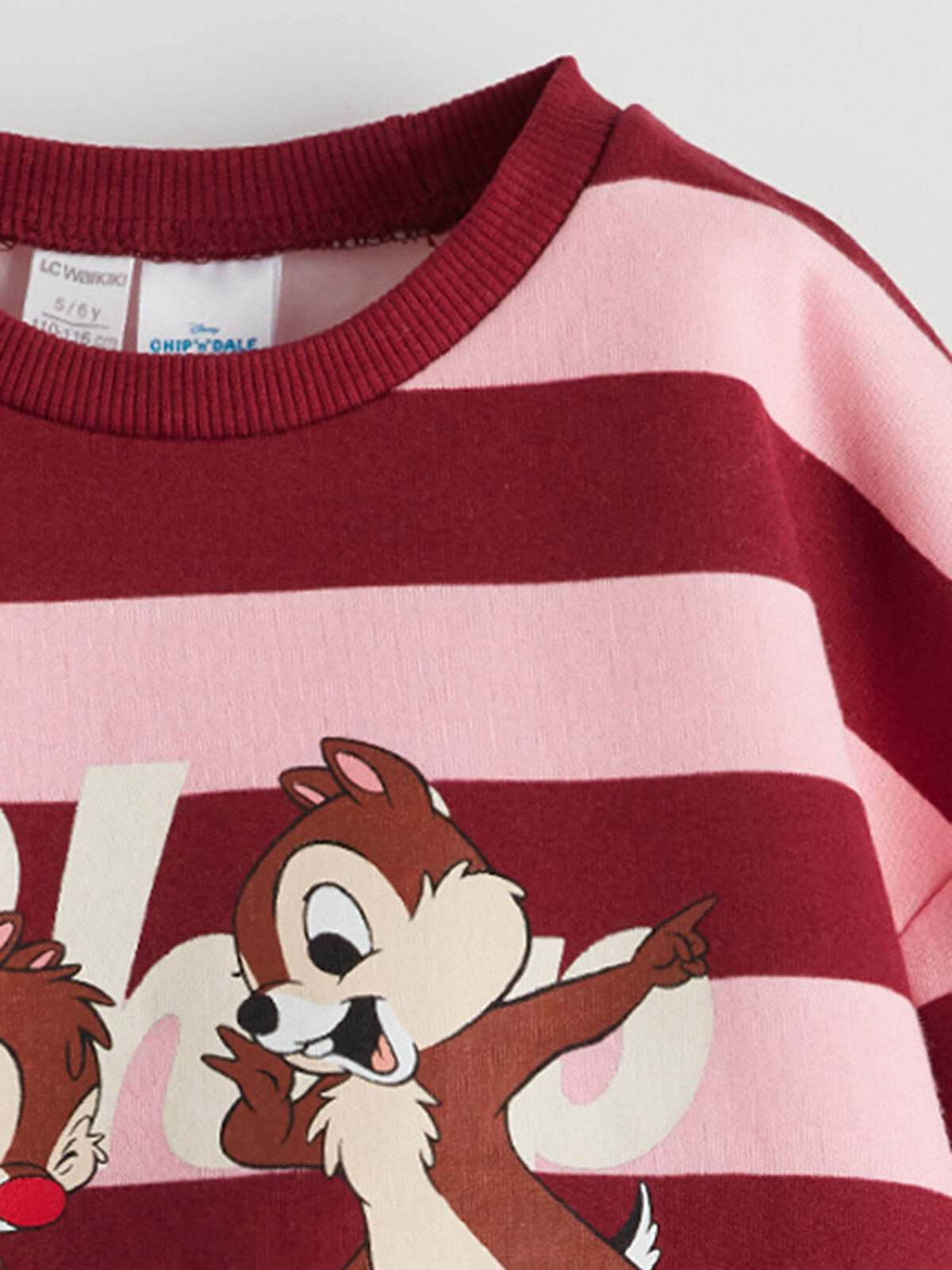 Dress your little one in this adorable Chip and Dale licensed girls’ tracksuit set, featuring a long-sleeve sweatshirt with a classic crew neckline and stylish striped design, paired with quilted patterned pants. Made from a soft blend of cotton and polyester, this cozy outfit ensures all-day comfort while allowing your child to express their playful personality. Perfect for casual outings or lounging at home, this stylish set combines fun and functionality, making it a must-have addition to your child’s wardrobe.