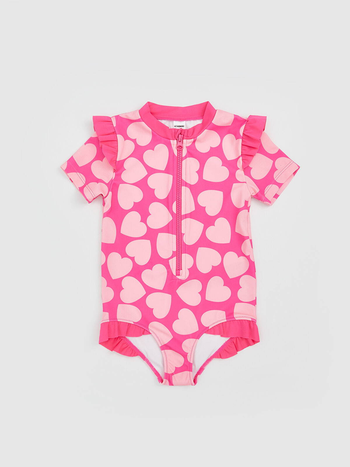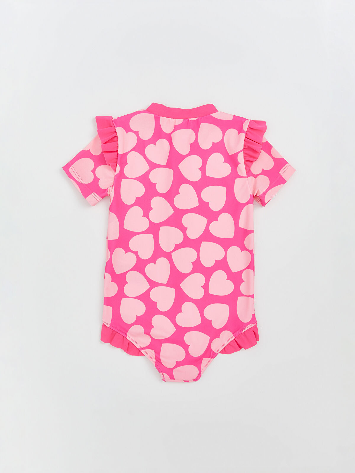 Make a splash this summer with our delightful pink heart printed girls’ swimsuit! Featuring a stylish collar and short sleeves, this adorable swimwear is designed with ruffled shoulders and leg openings for a fun and playful look. The front zipper closure ensures easy dressing, while the soft and stretchy fabric provides comfort for all-day play at the pool or beach. Perfect for your little one’s sunny adventures, this swimsuit combines style and functionality for a fantastic summer experience!