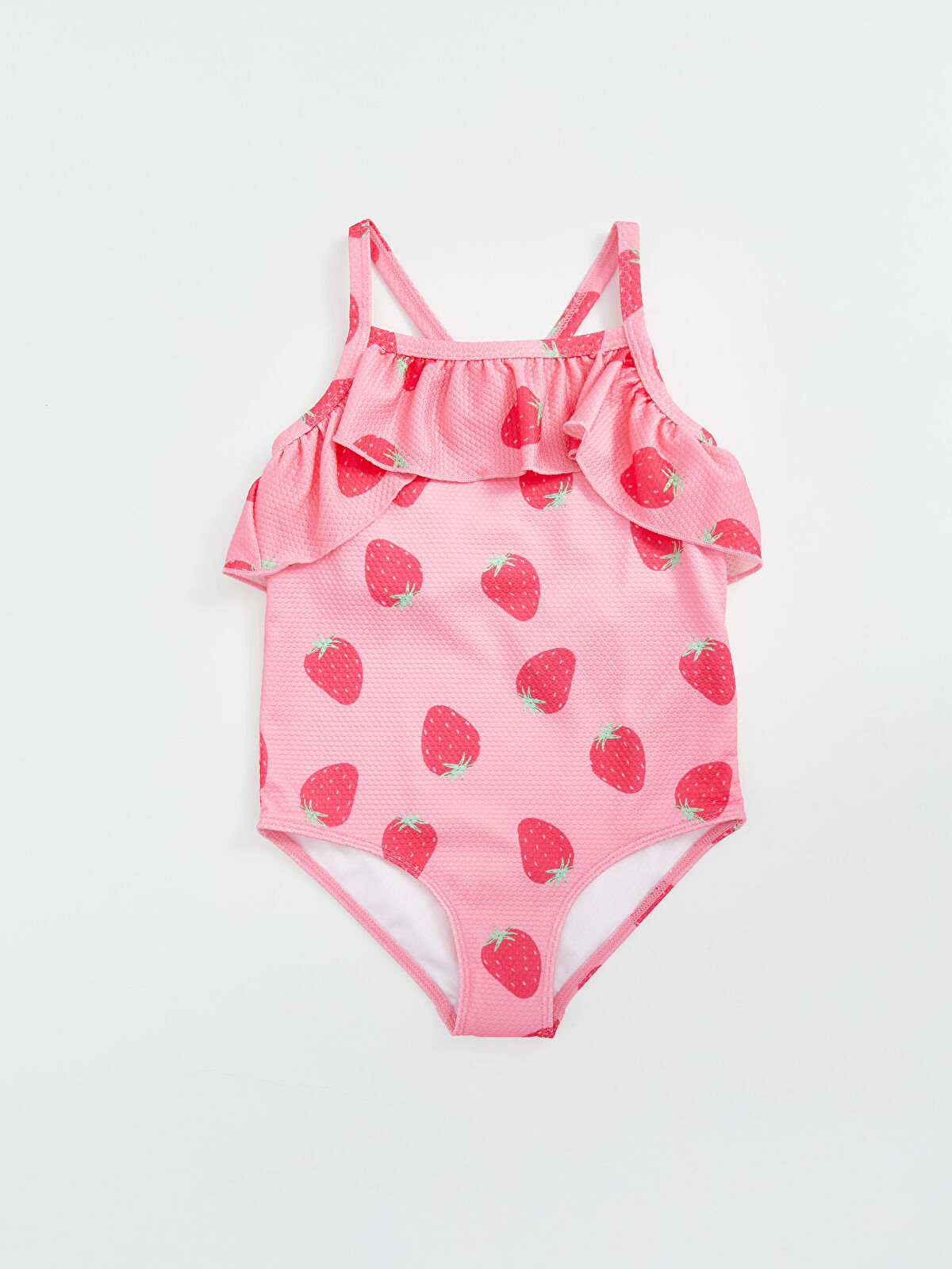 Make a splash this summer with our adorable LCW Kids Pink Strawberry Print Girls’ Swimsuit! Featuring a charming square neckline and playful ruffle details around the chest, this swimsuit is perfect for fun-filled days at the pool or beach. Crafted from a comfortable blend of materials, it ensures a snug fit while allowing for plenty of movement. Your little one will love the vibrant strawberry design, making every swim an exciting adventure!
