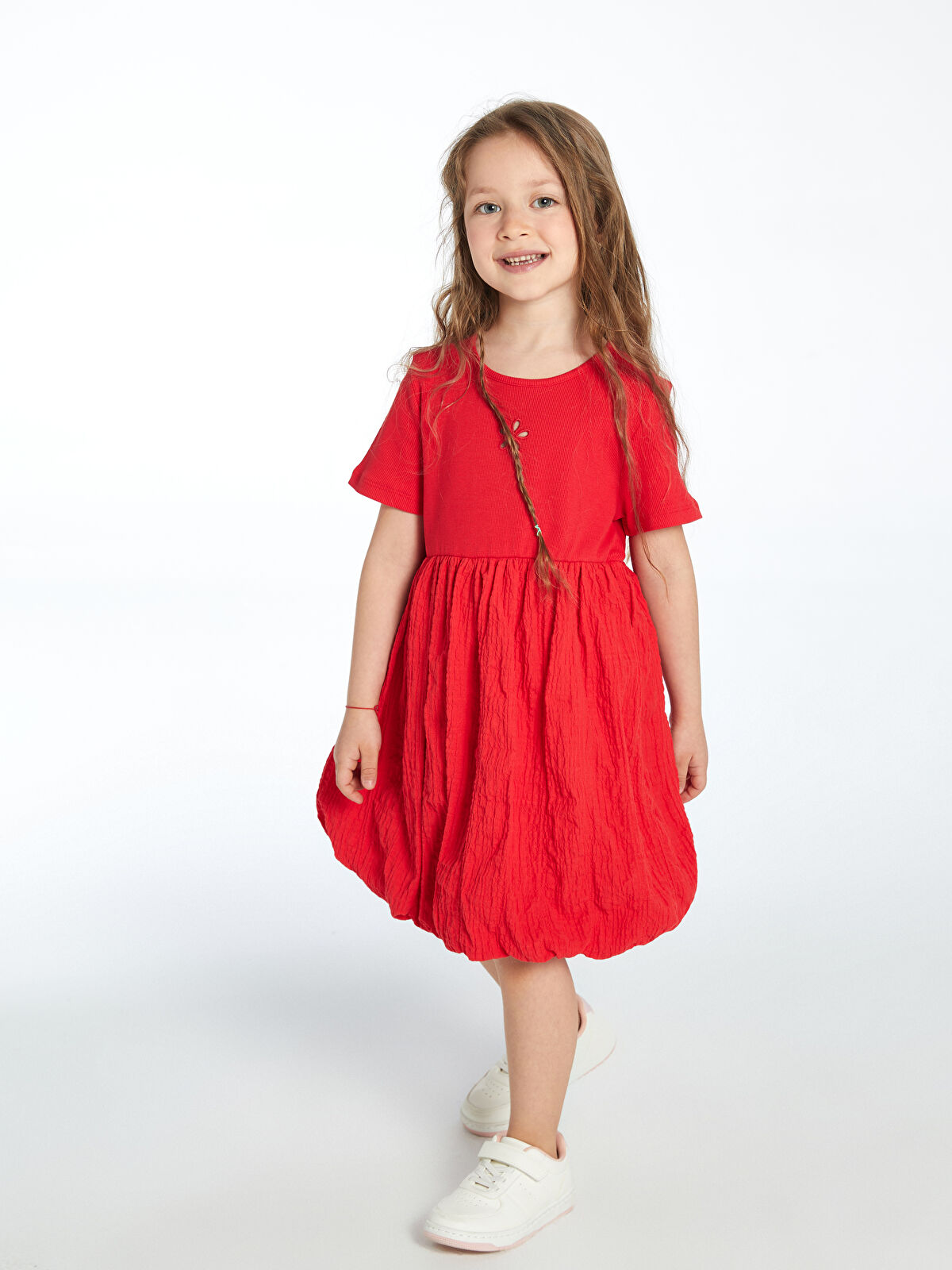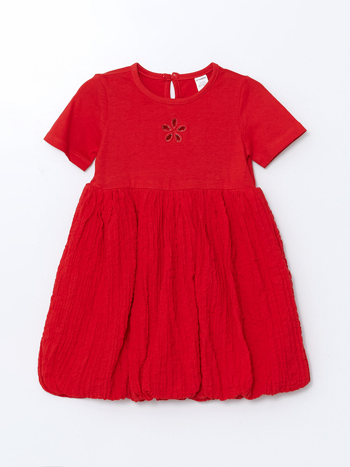This charming red crinkle dress for girls is crafted from high-quality cotton, ensuring comfort and breathability for all-day wear. Featuring a stylish round neckline and short sleeves, it boasts a delightful floral cut detail on the chest, adding a touch of elegance. The back button closure makes dressing easy and quick, while the soft fabric feels gentle against the skin. Perfect for special occasions or everyday adventures, this dress will keep your little one looking adorable and feeling great.