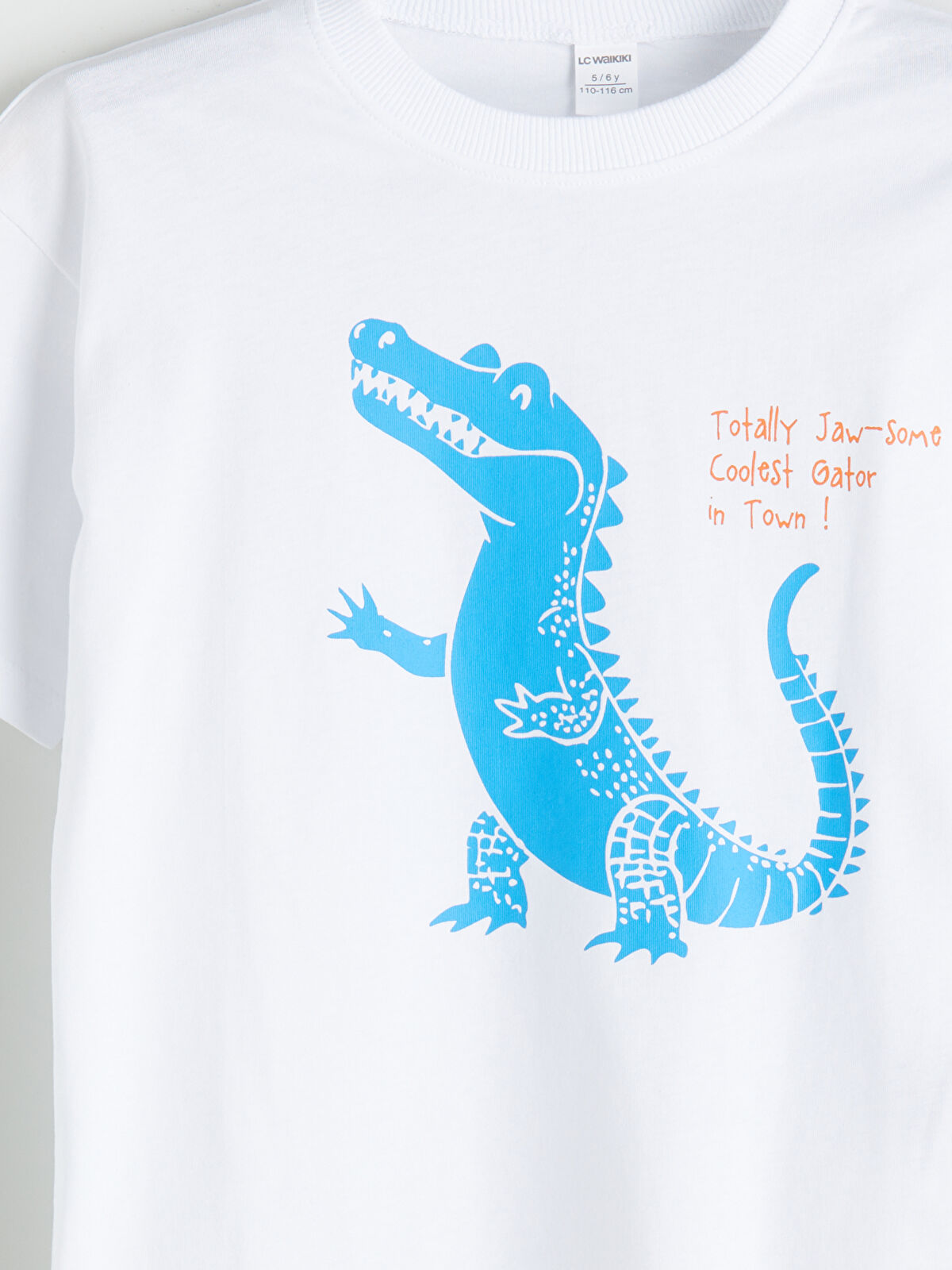 LCW Kids White Dinosaur Print T-Shirt for Boys