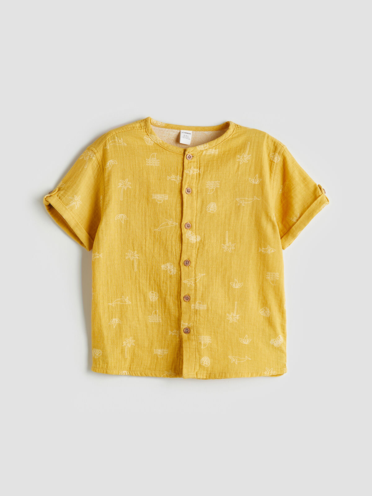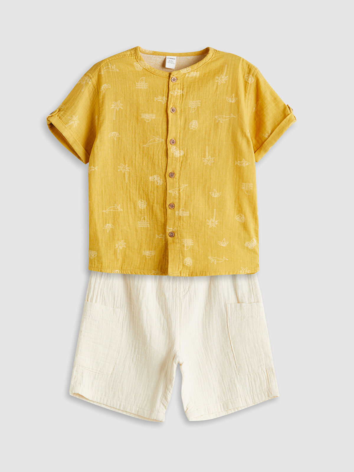 LCW Kids Yellow Mandarin Collar Boys Shirt and Shorts Set