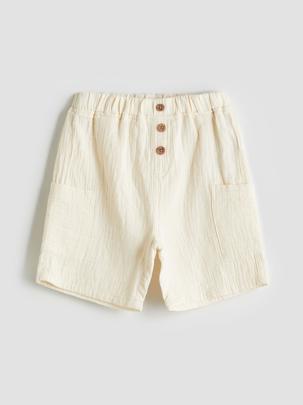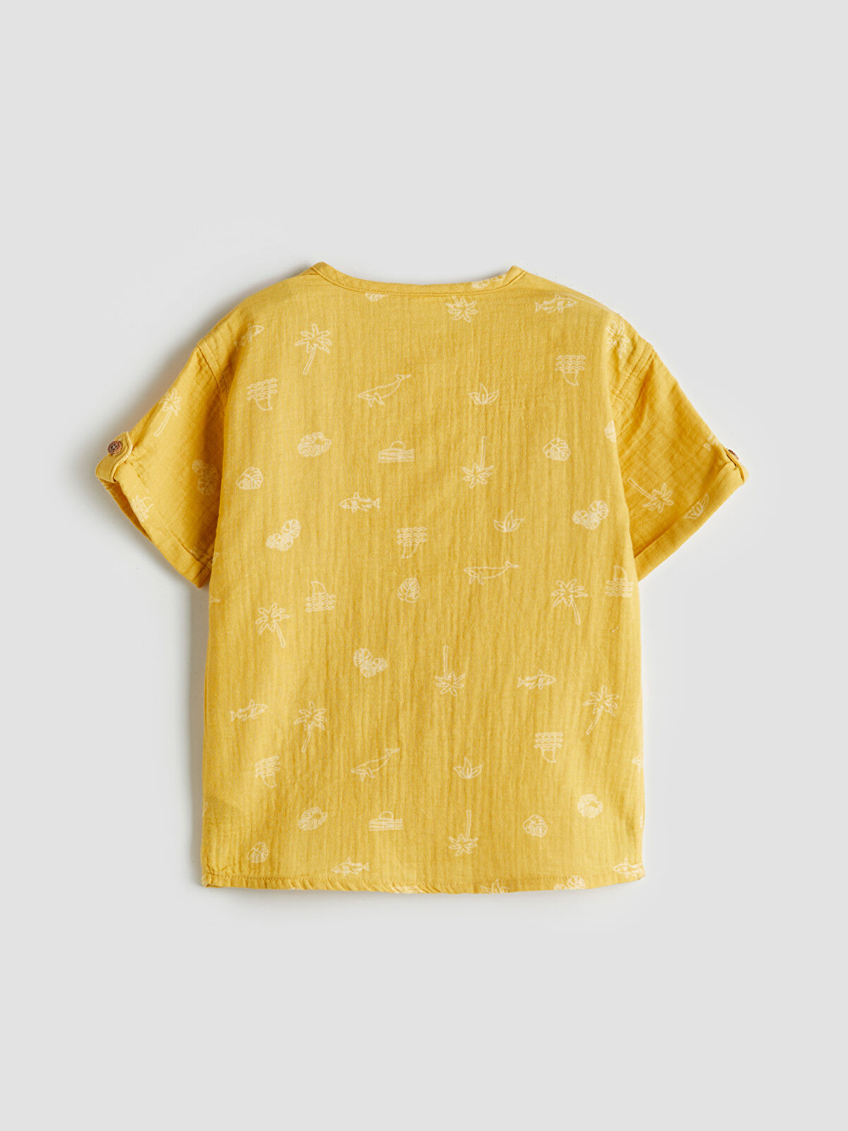 Elevate your little one’s style with this charming boys’ outfit featuring a short-sleeved shirt and matching shorts. Crafted from 100% cotton muslin, this comfortable and breathable set is perfect for warm days. The stylish mandarin collar and playful print add a touch of fun to everyday wear, making it an ideal choice for playdates or family outings. Let your child express their personality while enjoying the softness and durability of high-quality fabric.