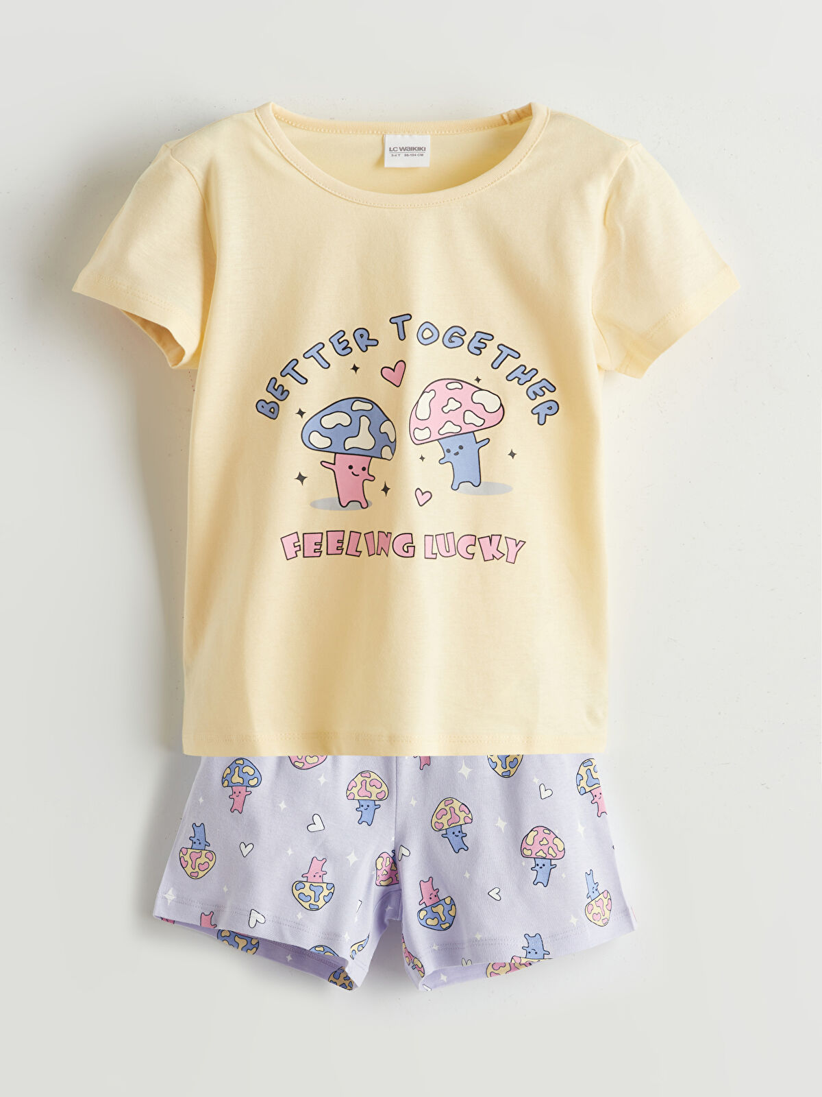 LCW Kids Yellow Printed Girls’ Pajama Set with Shorts