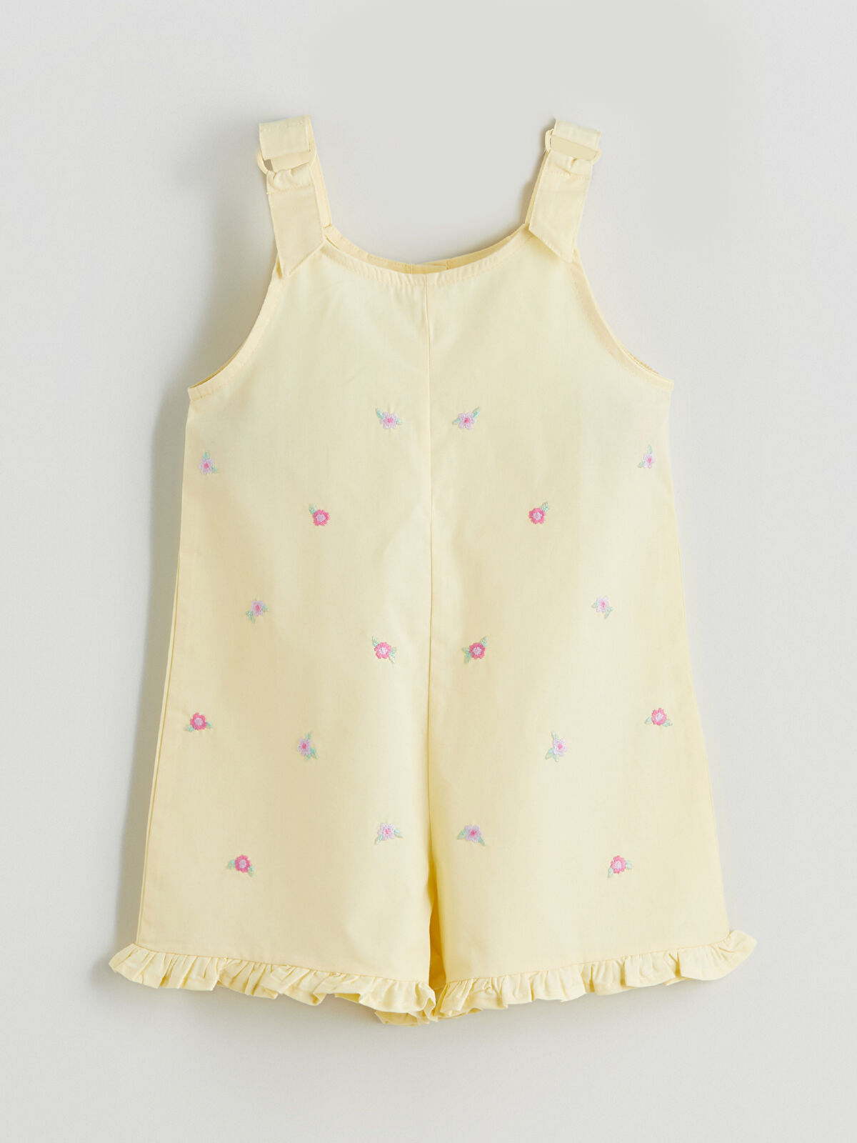 LCW Kids Yellow Strappy Floral Embroidered Baby Girl Overall